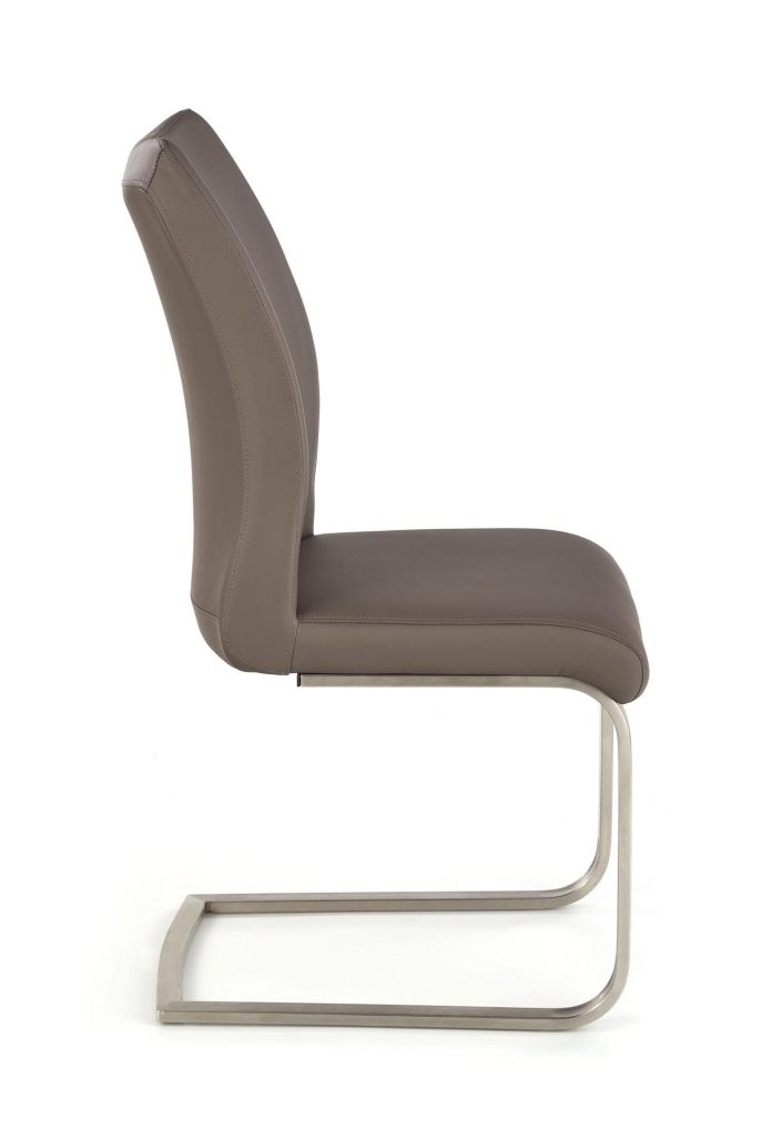 Stol Coris je eleganten in sodoben stol s kovinskim okvirjem v obliki črke U in prevleko iz eko usnja v sivi barvi. Dimenzije 44 x 45 x 101 cm omogočajo udobno sedenje, kar je idealno za moderne jedilnice.