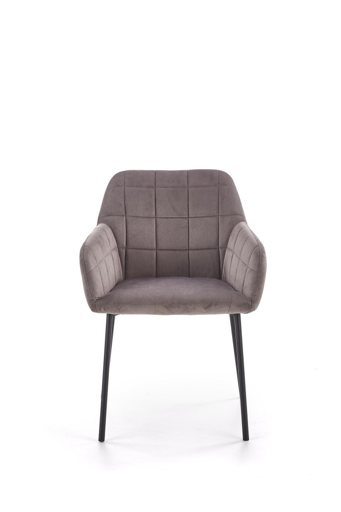 Stol Emor je na voljo v temno zeleni, temno modri ali sivi barvi iz žametne tkanine s kovinskim črnim ogrodjem, za sodoben ambient. Višina sedeža je 46 cm.