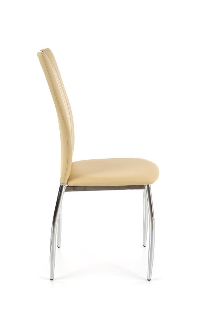 Stol Gilo z elegantno bež umetno usnje, kromiranim okvirjem in sedežno višino 45 cm je na voljo v različnih barvah. Primeren za sodobne prostore, kjer dodaja pridih prestiža in funkcionalnosti.