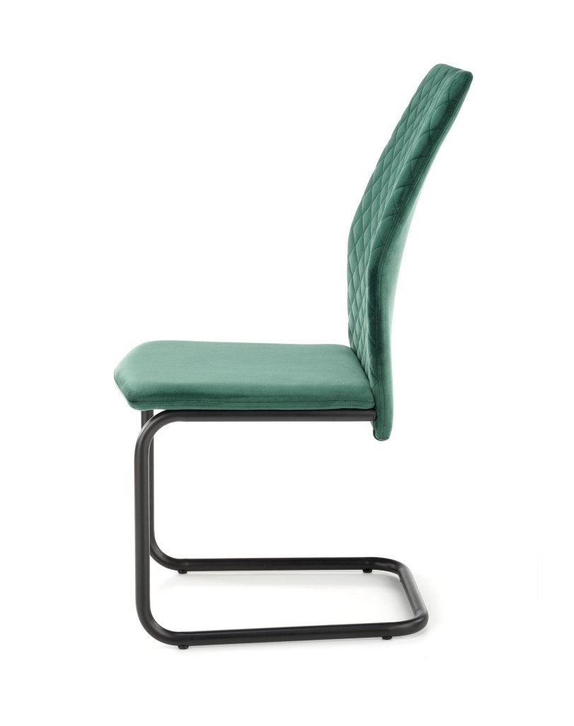 Stol Gorn s sodobnim dizajnom in žametnim oblazinjenjem v temno zeleni barvi. Čvrsto kovinsko ogrodje omogoča dolgotrajno uporabo in eleganco v vsakem prostoru.
