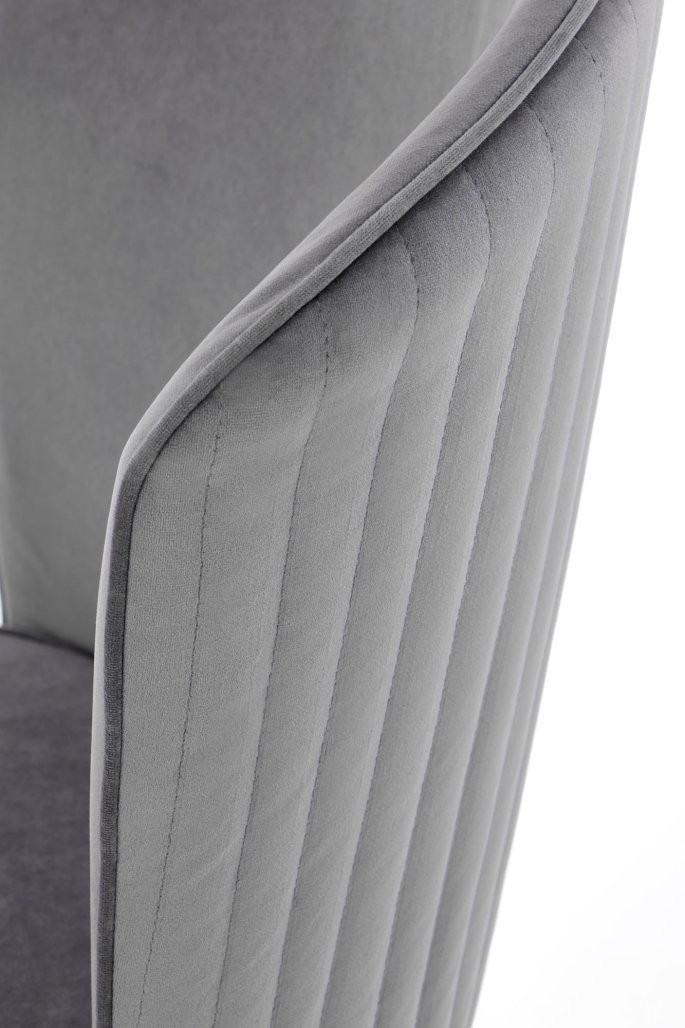 Stol Hina s pridihom prestiža, na voljo v več barvah. Žametne prevleke in črno kovinsko ogrodje ustvarjajo eleganten in prestižen videz.