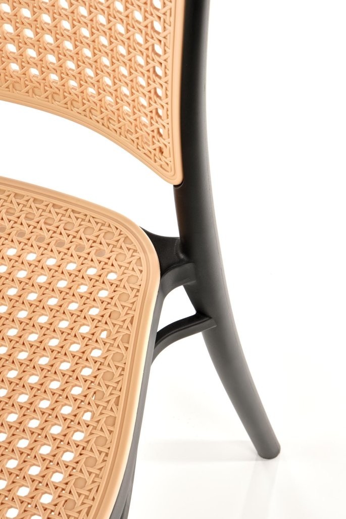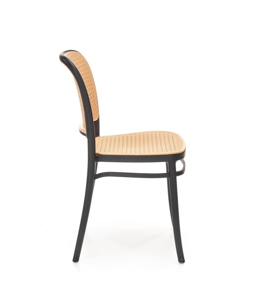 Stol Leno z naravnim dizajnom brez oblazinjenja. Izdelan iz polipropilena in kovine, s črnim ogrodjem. Boho in skandinavski stil združena v enem praktičnem stolu.