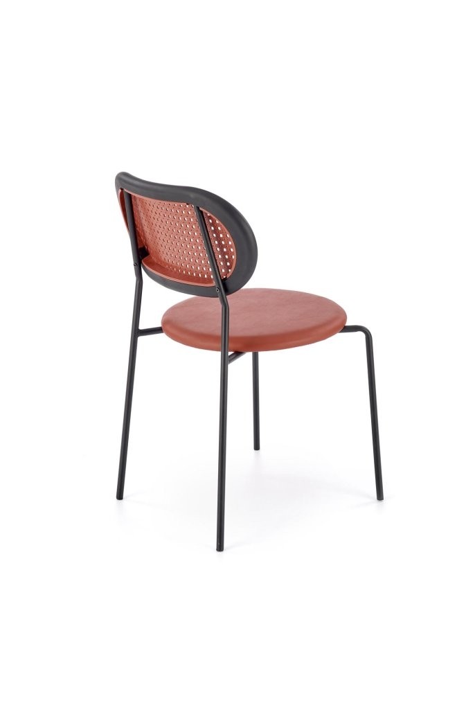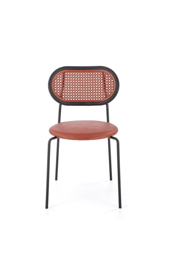 Stol Leora združuje usnje in umetni ratan za edinstven retro boho stil. Na voljo je v bordo, zeleni in drugih barvah ter je popolno dopolnilo sodobnemu ambientu.