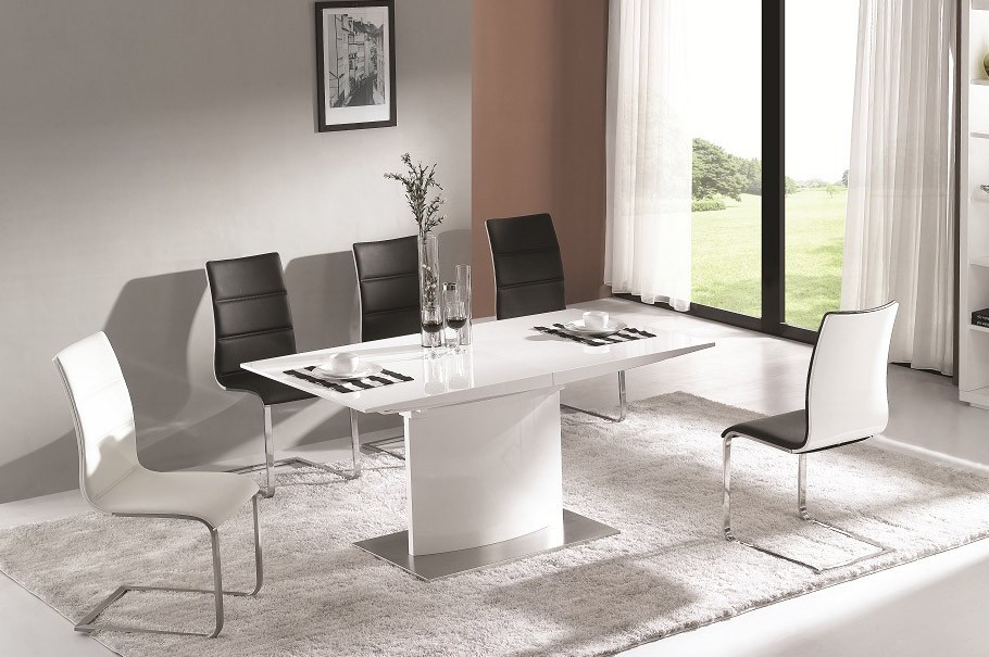 Jedilni stol Limbo je izredno kakovosten in udoben stol modernega dizajna oblazinjen v eko usnje bele ali črne barve.
