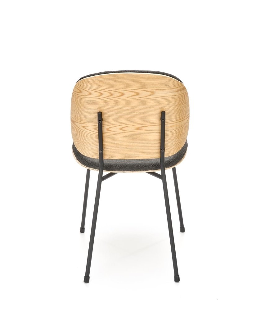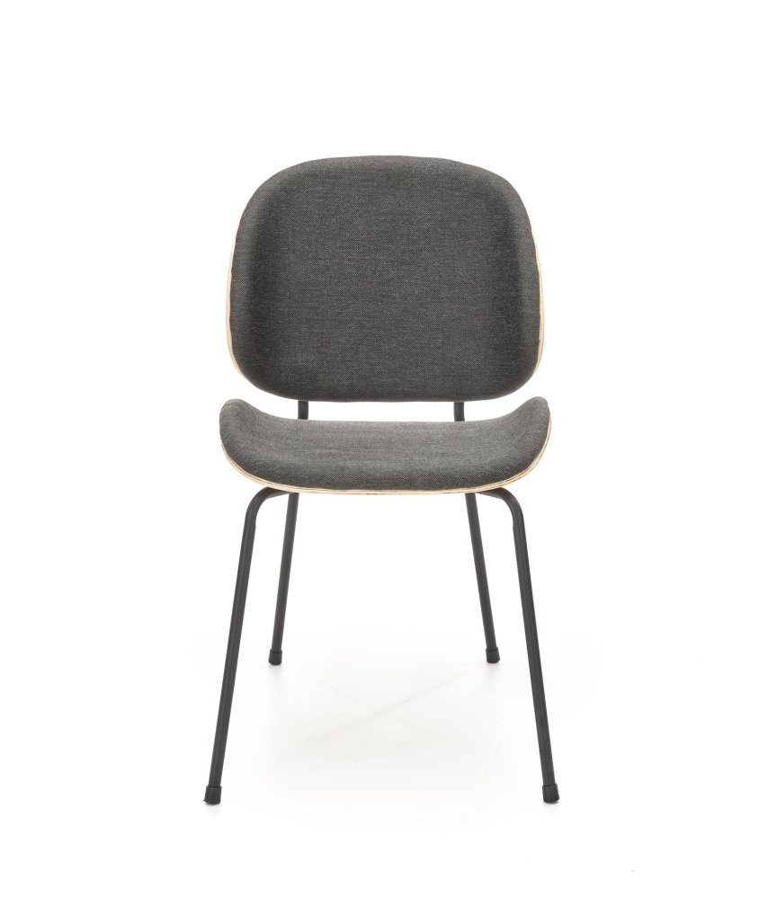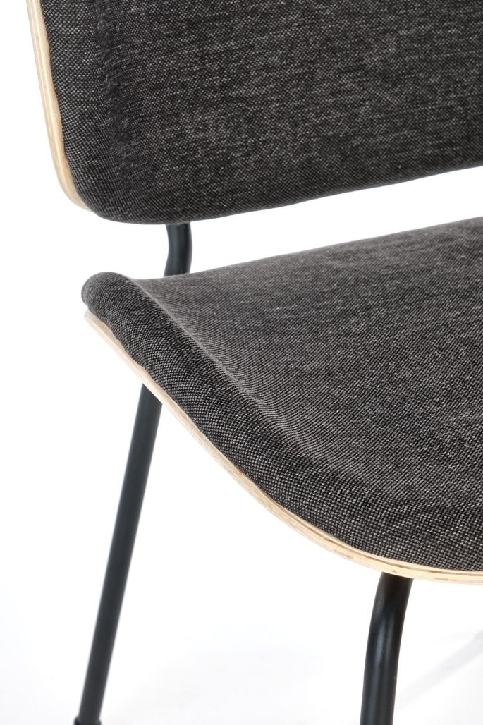 Stol Lino z modernim in skandinavskim pridihom. Kombinacija temno sive tkanine in naravnih hrastovih tonov ustvarja eleganten in topel videz.