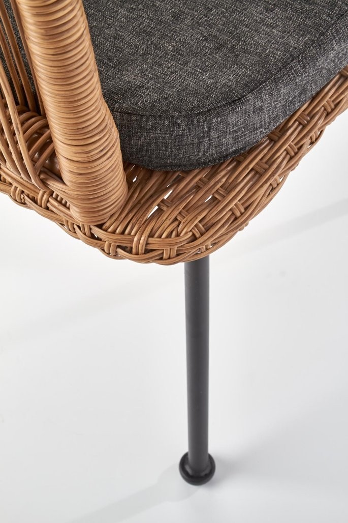 Stol Morn združuje naravni videz ratana s skandinavskim stilom. Elegantno kovinsko ogrodje in udobno sivo oblazinjenje prinašata toplino in udobje.