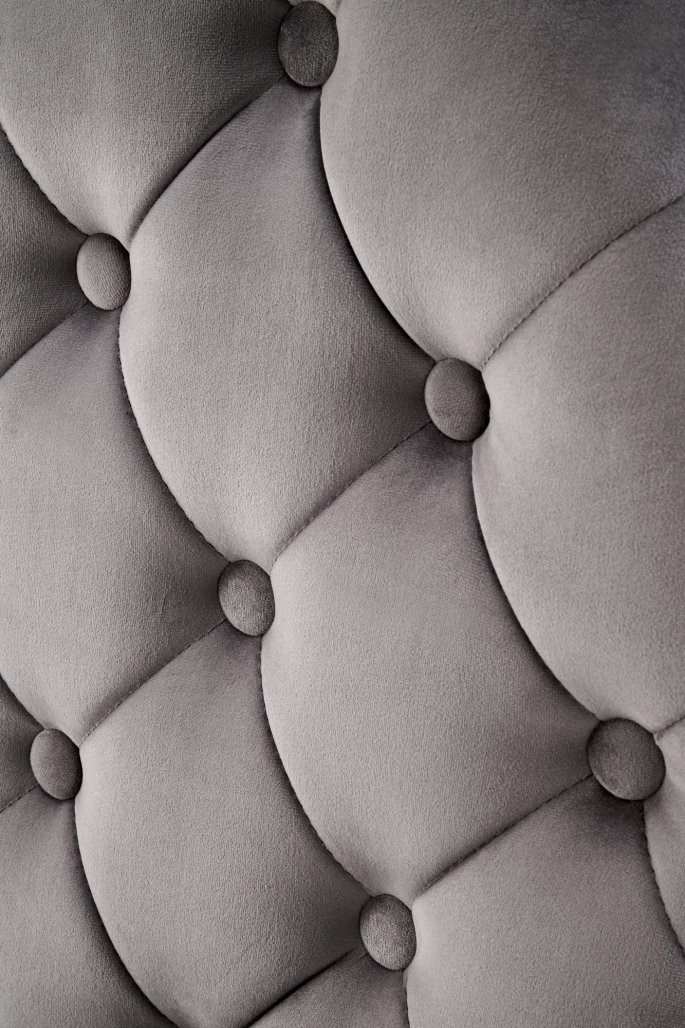 Stol Olar z žametnim oblazinjenjem v sivi barvi in elegantnim okvirjem iz nerjavečega jekla v srebrni barvi. Popoln za elegantno in moderno vzdušje.