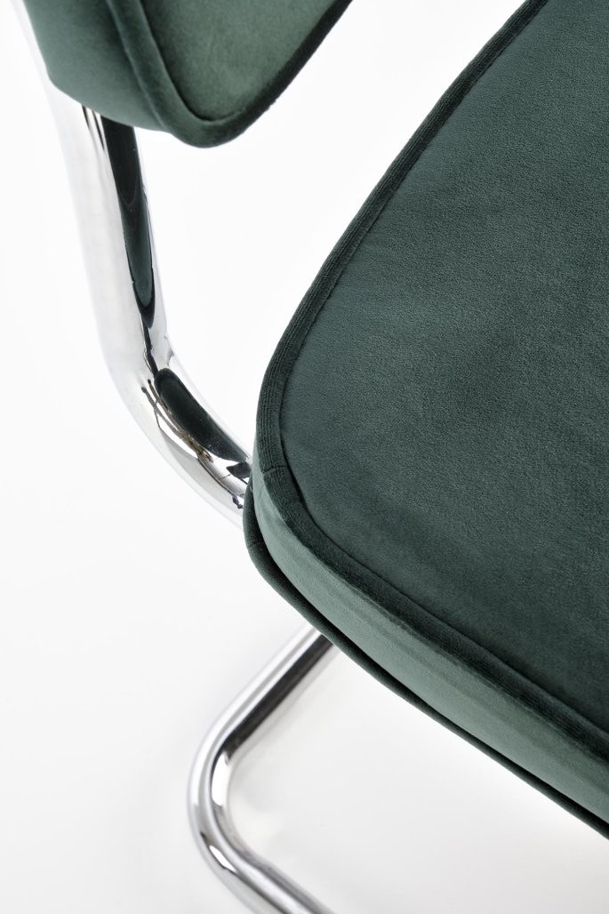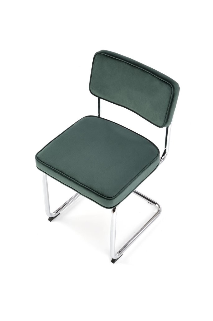 Stol Orlinor v temno zeleni, kromiranem okvirju z oblazinjenjem iz žameta, prinaša retro in moderen stil v notranjost z možnostjo izbire barv.