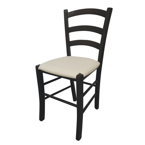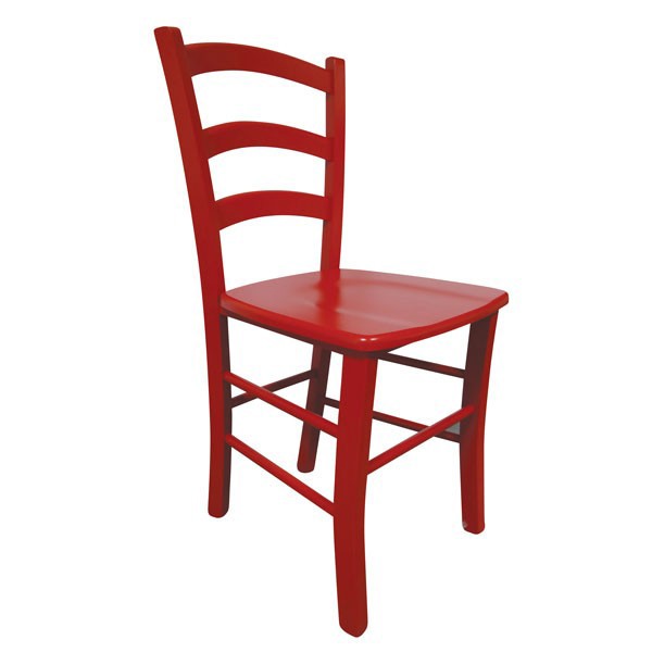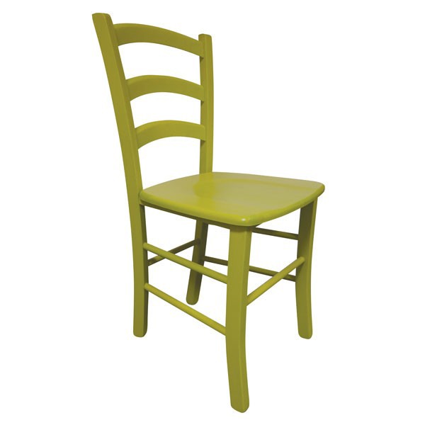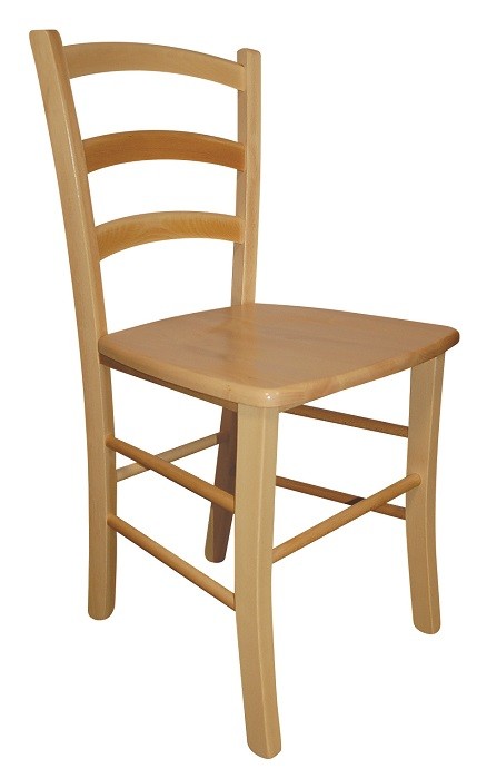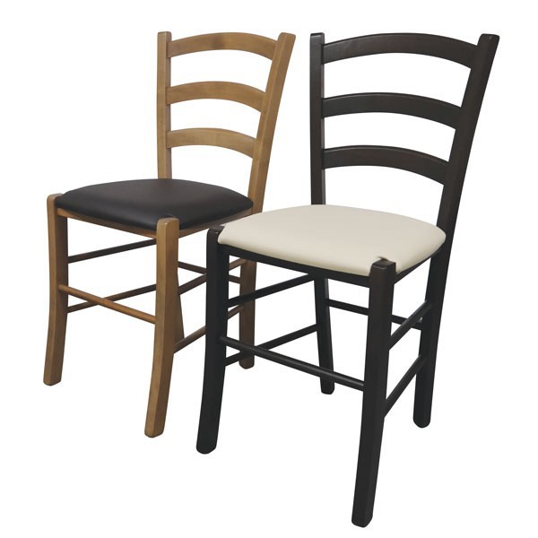 Stol Paesana je na voljo v različnih barvah. Izdelan je iz lesa in na voljo z oblazinjenim ali masivnim sediščem.