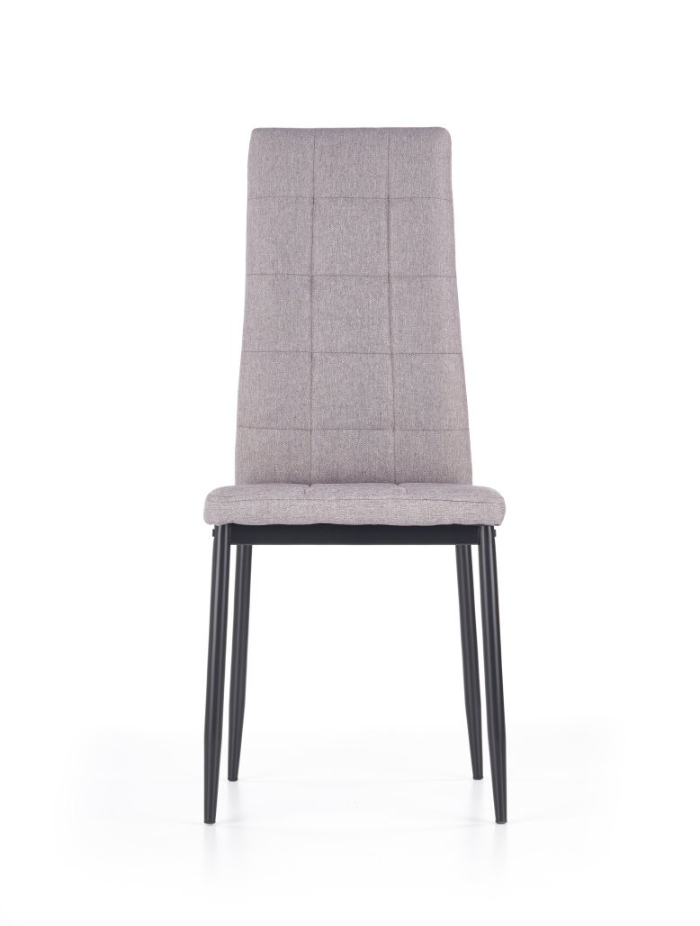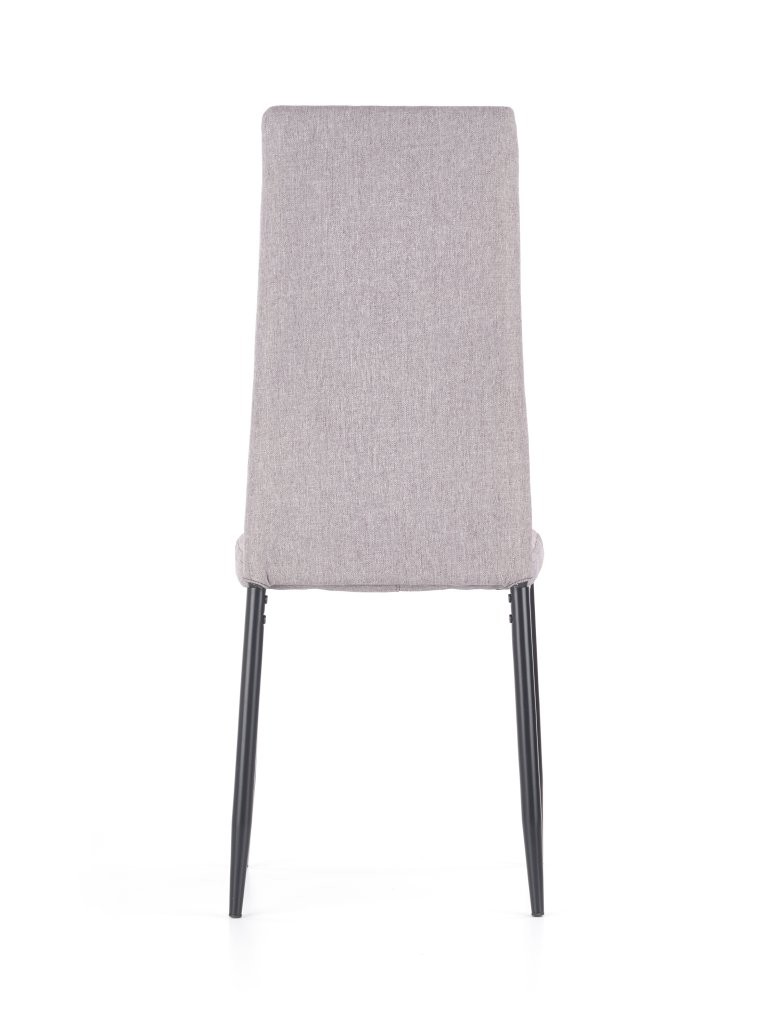 Stol Tilo v sivi tkanini s prašno lakiranim kovinskim ogrodjem za preprost industrijski videz. Višina sedeža 45 cm omogoča udobno sedenje v industrijskih ali klasičnih prostorih.