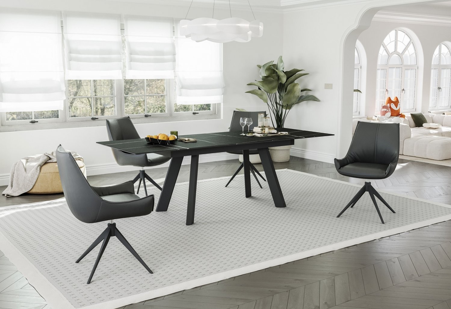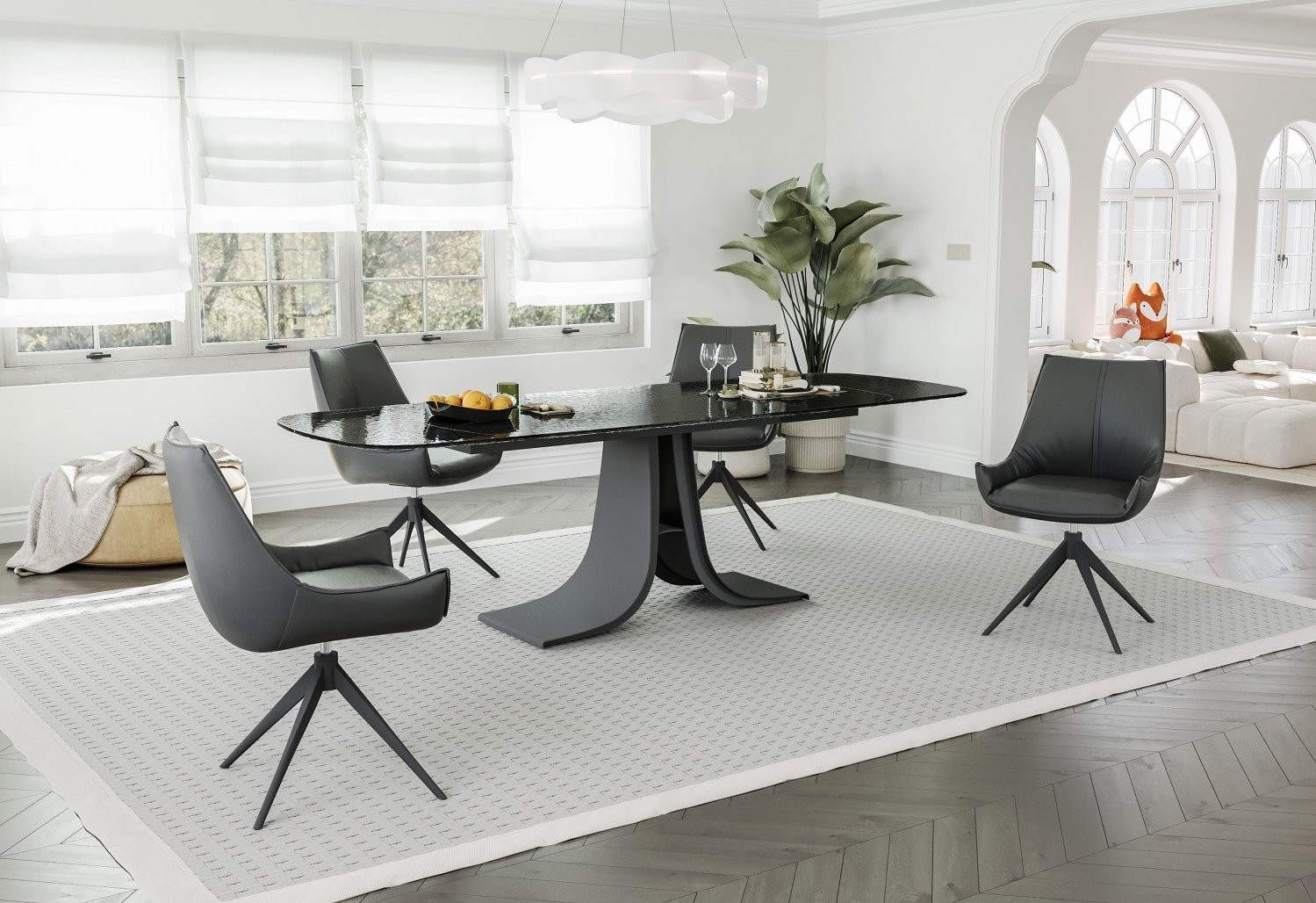Stol TRENDI (črna) je eleganten in moden jedilniški stol iz pravega kravjega usnja, ki združuje udobje in enostavno vzdrževanje. Idealna izbira za vašo jedilnico!