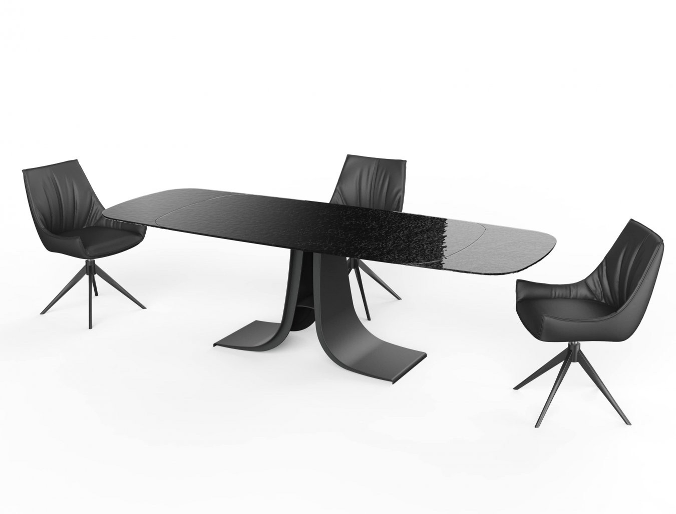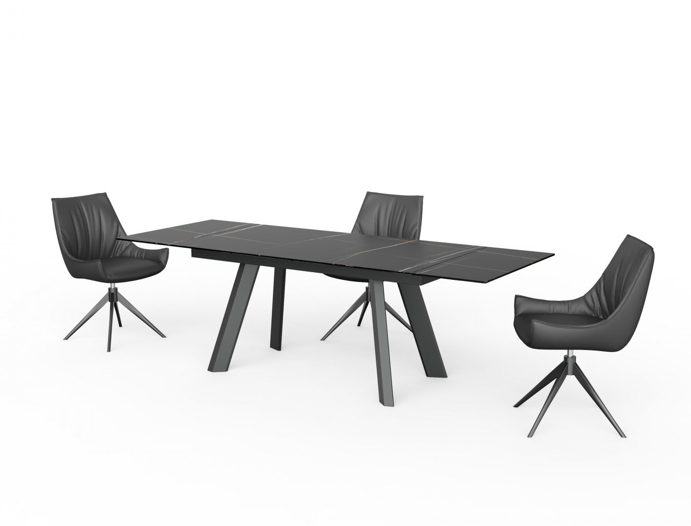 - Podnožje stola je narejeno iz kovine, prašno lakirane s črno barvo za boljšo zaščito pred okoljem