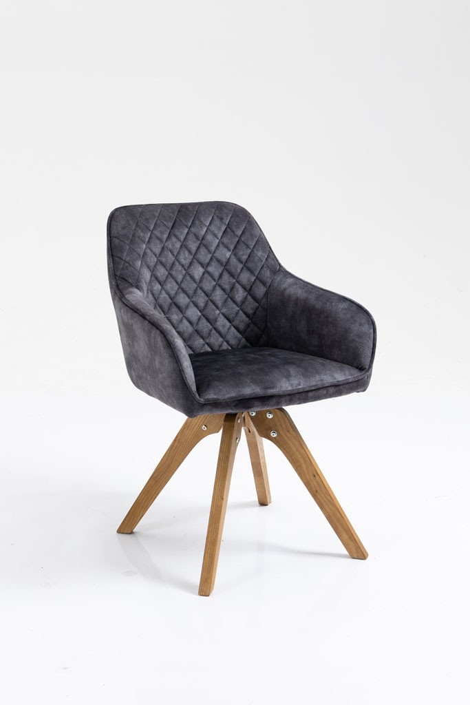 Sodoben jedilni stol VELES bo popestril vsako kuhinjo in jedilnico! Ta predvsem udoben stol je oblazinjen v debelo žametno tkanino, ter je na voljo v treh različnih barvah! Kombinacija podnožja iz masivnega lesa ter rombastega prešitega vzorca na hrbtišu bo postavila ta stol v središče pozornosti vsake sobe. Stol je tudi vrtljiv za 180°.