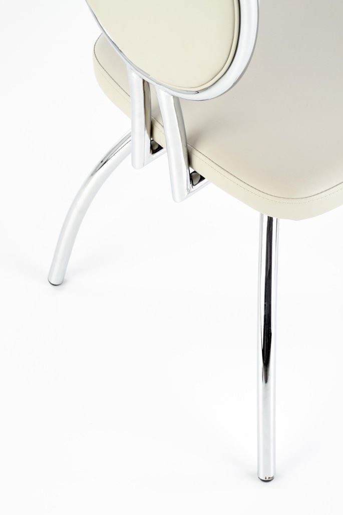 Stol Viro iz svetlo sivega umetnega usnja in kromiranega kovinskega ogrodja. Višina sedeža 46 cm in krožno oblikovane noge poskrbijo za moderen in klasičen slog.