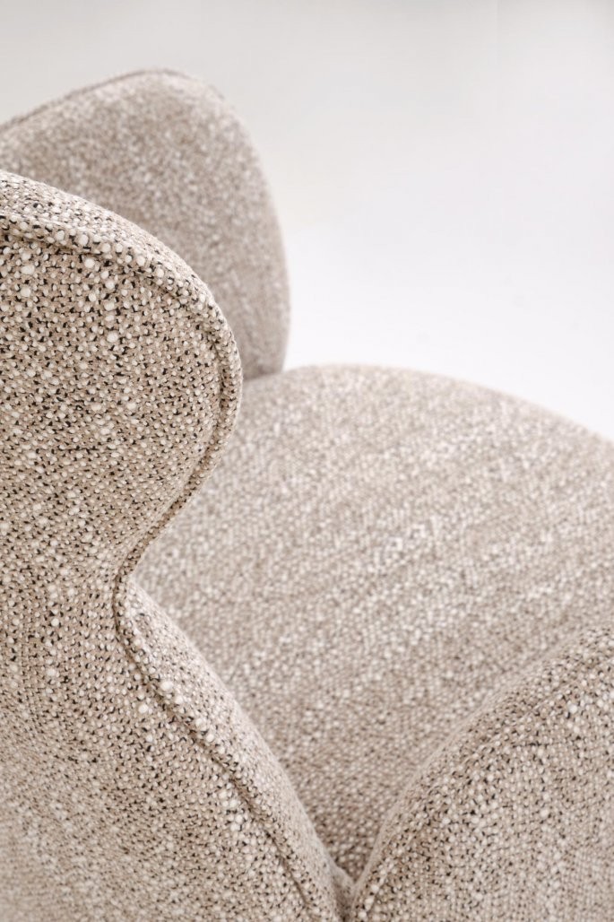 Stol je izdelan iz trpežnih in kakovostnih materialov, vključno z oblazinjenjem iz blaga in stabilnim ogrodjem iz masivnega hrastovega lesa. Za dodatno udobje in prilagodljivost je opremljen z vrtljivo funkcijo, ki omogoča enostavno obračanje in komunikacijo. Ker gre za izdelek, ki je na voljo v več barvnih variantah, se bo zagotovo popolnoma vključil v vaš notranji prostor.