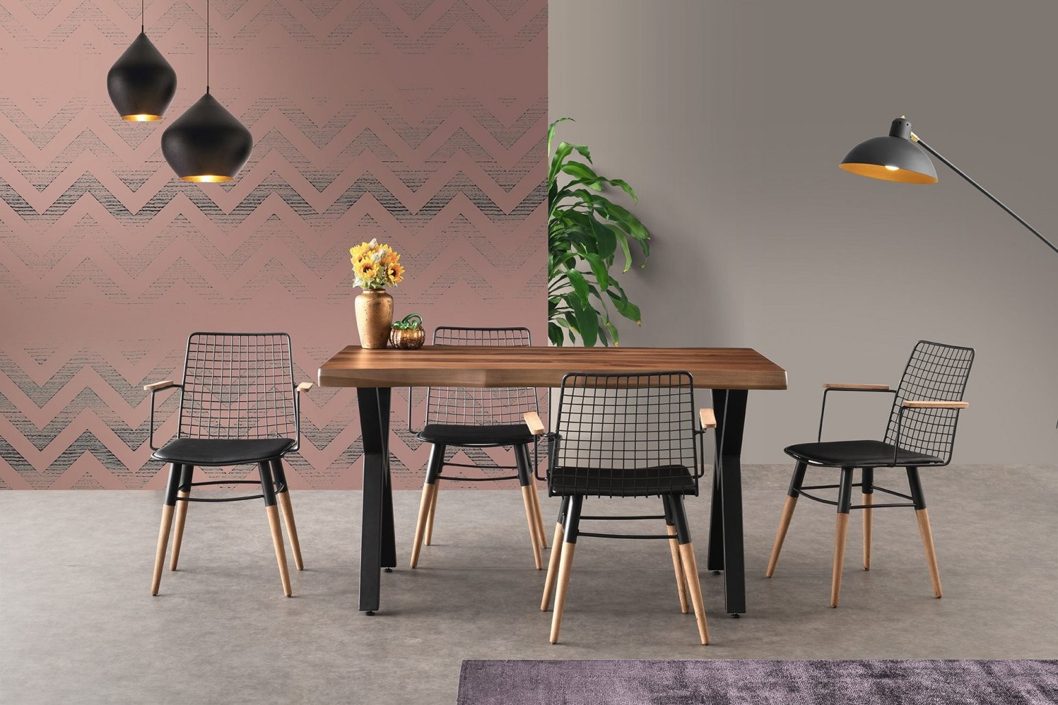 Dodajte pridih sodobne sofisticiranosti svojemu domu z našim elegantnim in stilskim kompletom stolov. Kombinacija črne in orehove barve doda sodoben pridih vsakemu prostoru, medtem ko bo edinstvena zasnova zagotovo navdušila vaše goste.