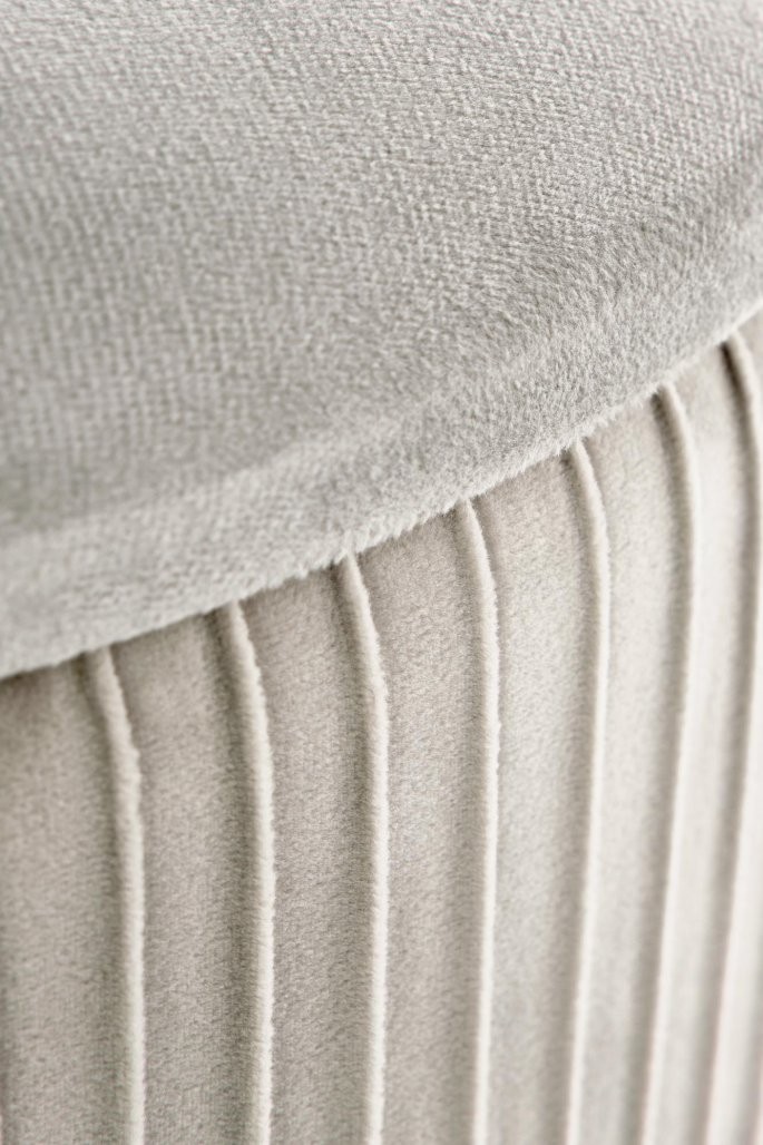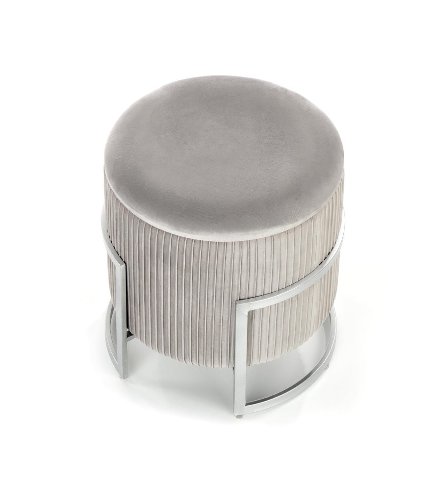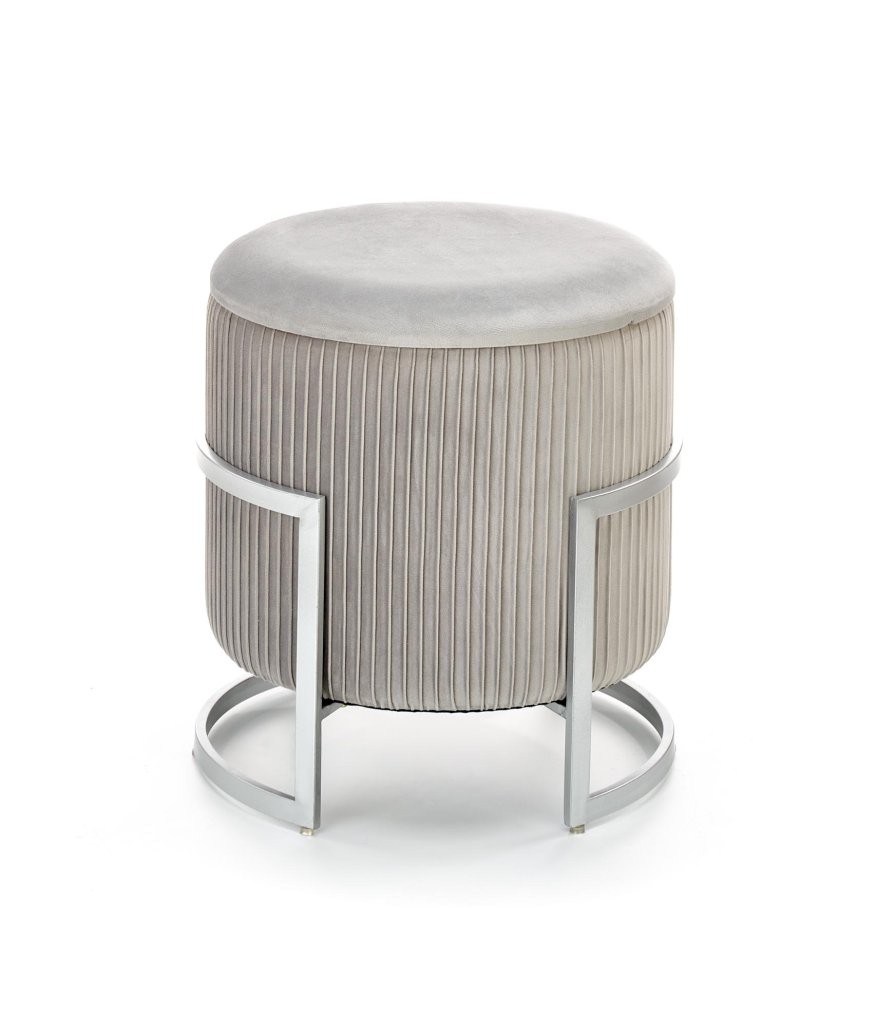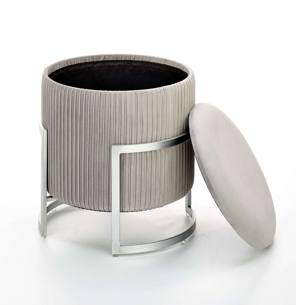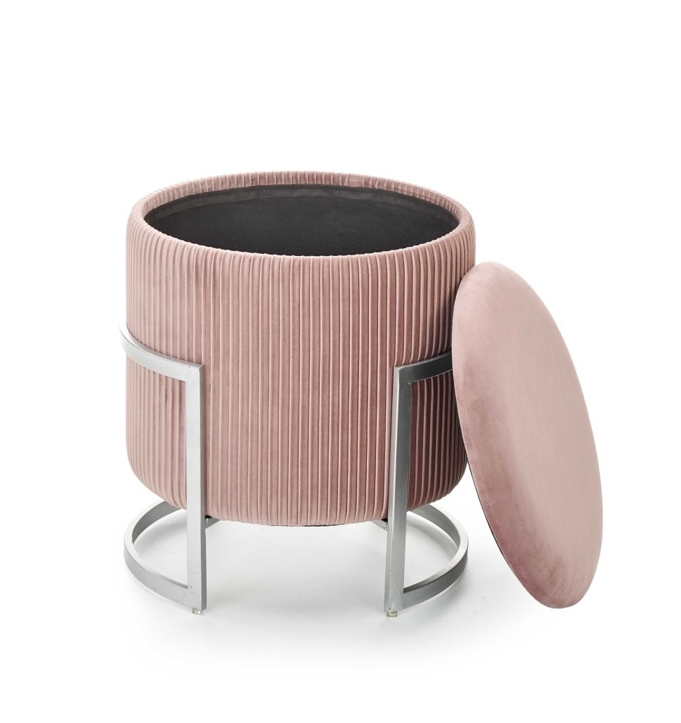 Tabure Setor s funkcijo shranjevanja, na voljo v sivi ali roza barvi. Izdelan iz žameta in kovinskim podnožjem v srebrni barvi. Premer 40 cm, višina 46 cm.