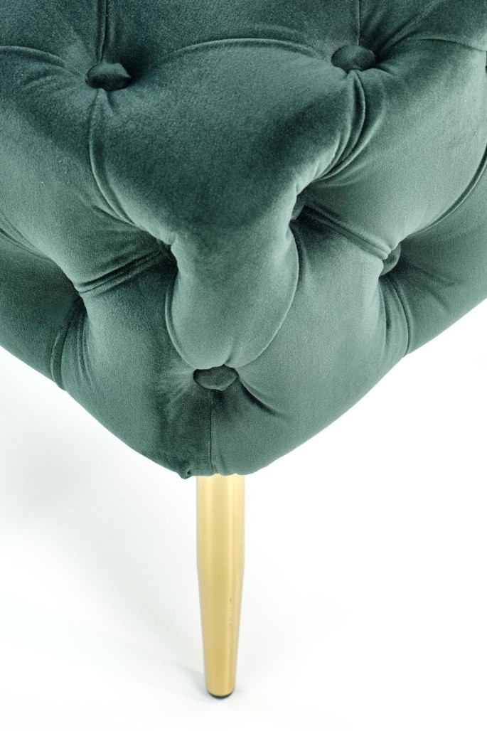 Tabure Umira z žametnim oblazinjenjem in zlatimi kovinskimi nogami v prostor prinaša pridih prestižnosti. Na voljo v več barvah, kot so temno zelena, siva in roza Tabure je primeren za vse vrste interierjev.