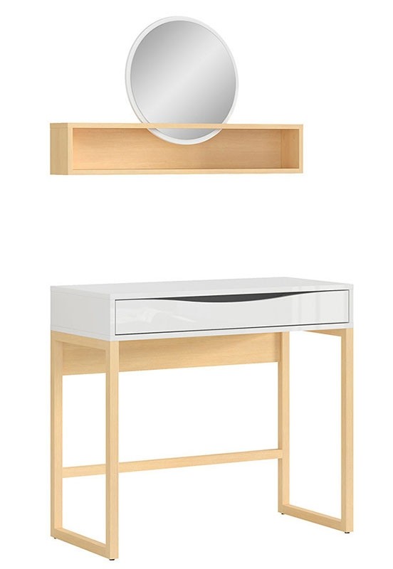 Toaletna mizica PORI je stilska toaletna mizica, ki je na voljo v barvni kombinaciji bele barve v visokem sijaju in hrasta in se bo lepo podala v vsako spalnico. Narejena je iz kakovostnega materiala MDF, ima funkcijo tihega zapiranja in nudi dovolj prostora za shranjevanje nakita, kozmetike, in ostalih poljubnih predmetov. Preverite tudi ostale elemente iz tega programa in si sestavite spalnico.