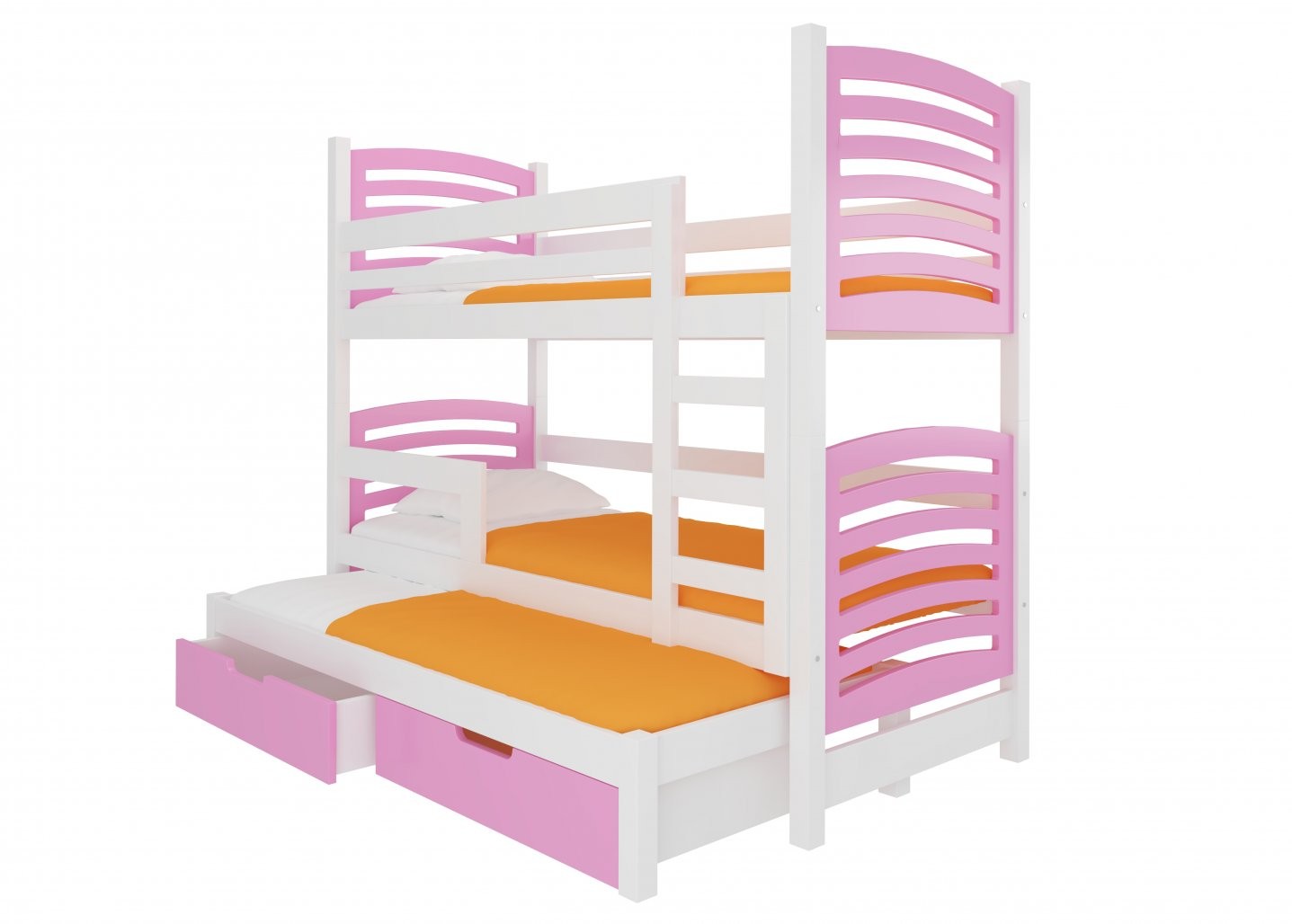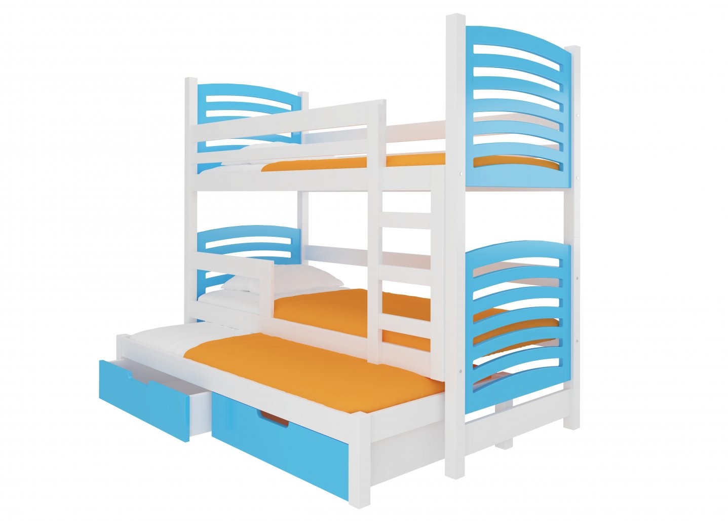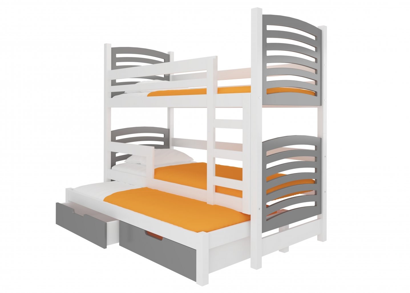 Troslojni otroški pograd SORIA je idealna rešitev za prihranek prostora v manjših otroških sobah. Zasnovan je z mislijo na varnost, udobje in funkcionalnost, zato je odlična izbira za veččlanske družine.