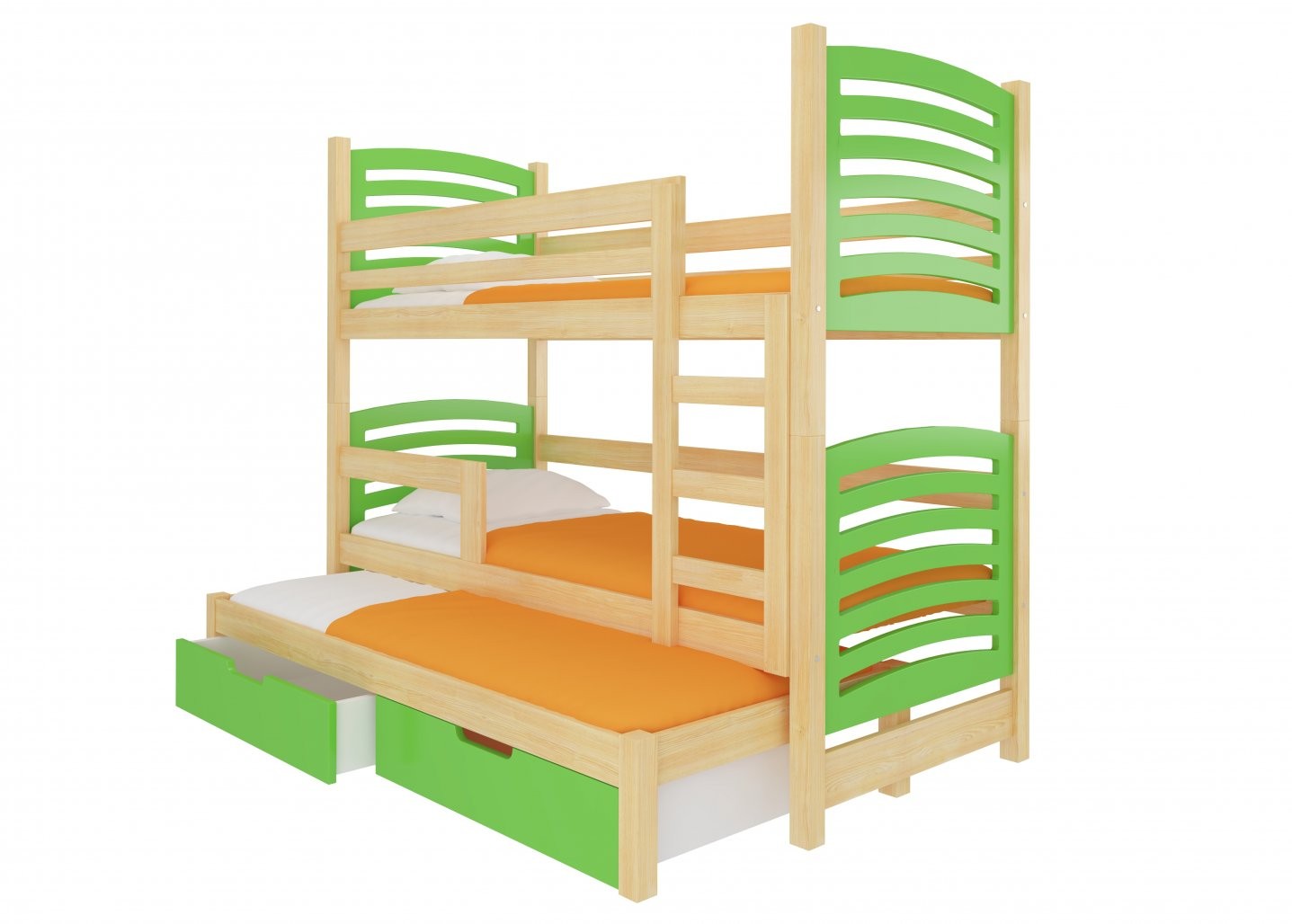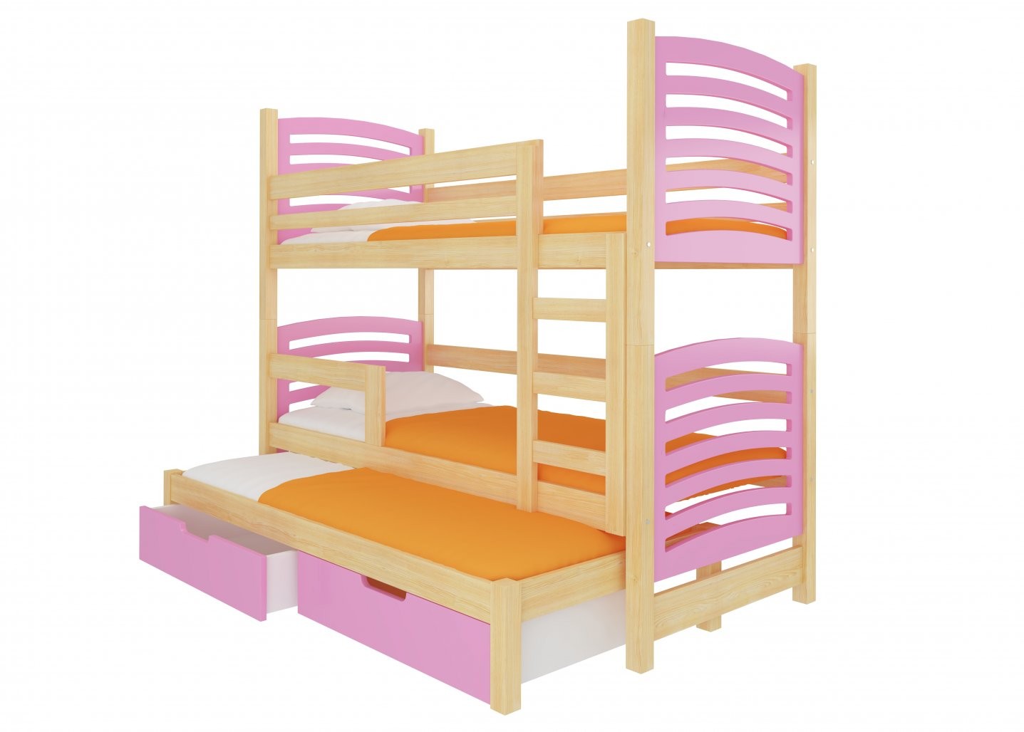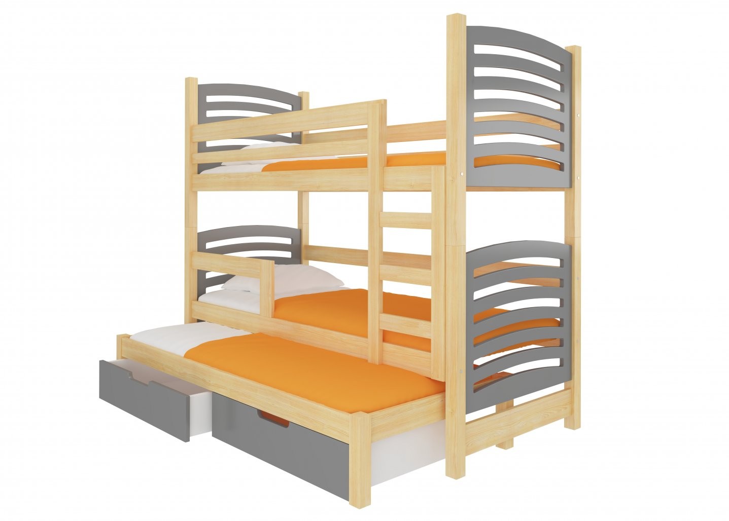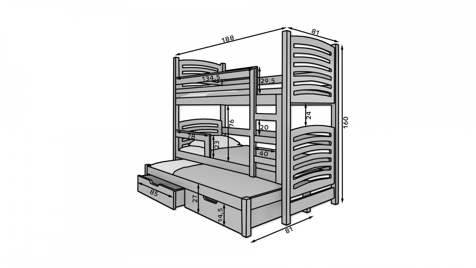 Troslojni otroški pograd SORIA je idealna rešitev za prihranek prostora v manjših otroških sobah. Zasnovan je z mislijo na varnost, udobje in funkcionalnost, zato je odlična izbira za veččlanske družine.