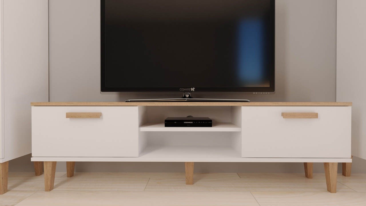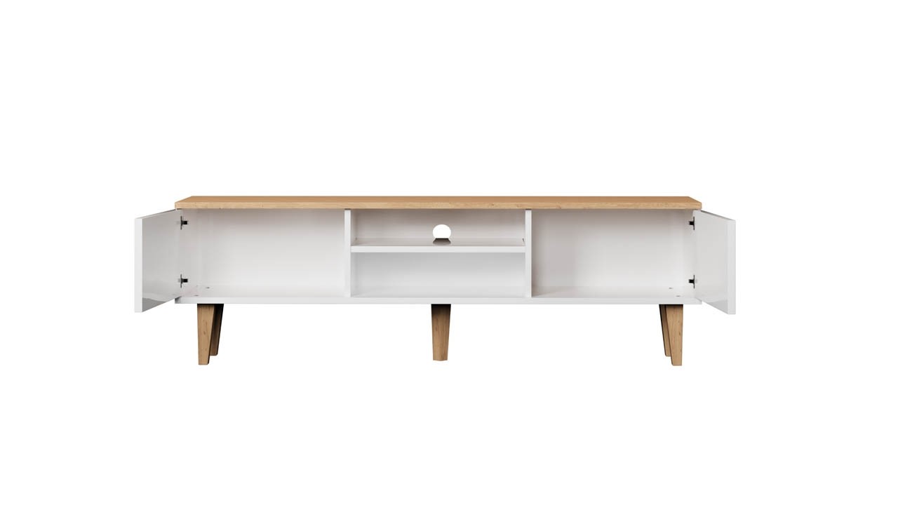 Tv omarica DENVER je modernega izgleda, široka 160 cm in se odlično poda v vsako dnevno sobo. Tv omarica vsebuje polico in dvoje vrat, v katere lahko pospravite družabne igre, manjše elektronske naprave ali knjige.
