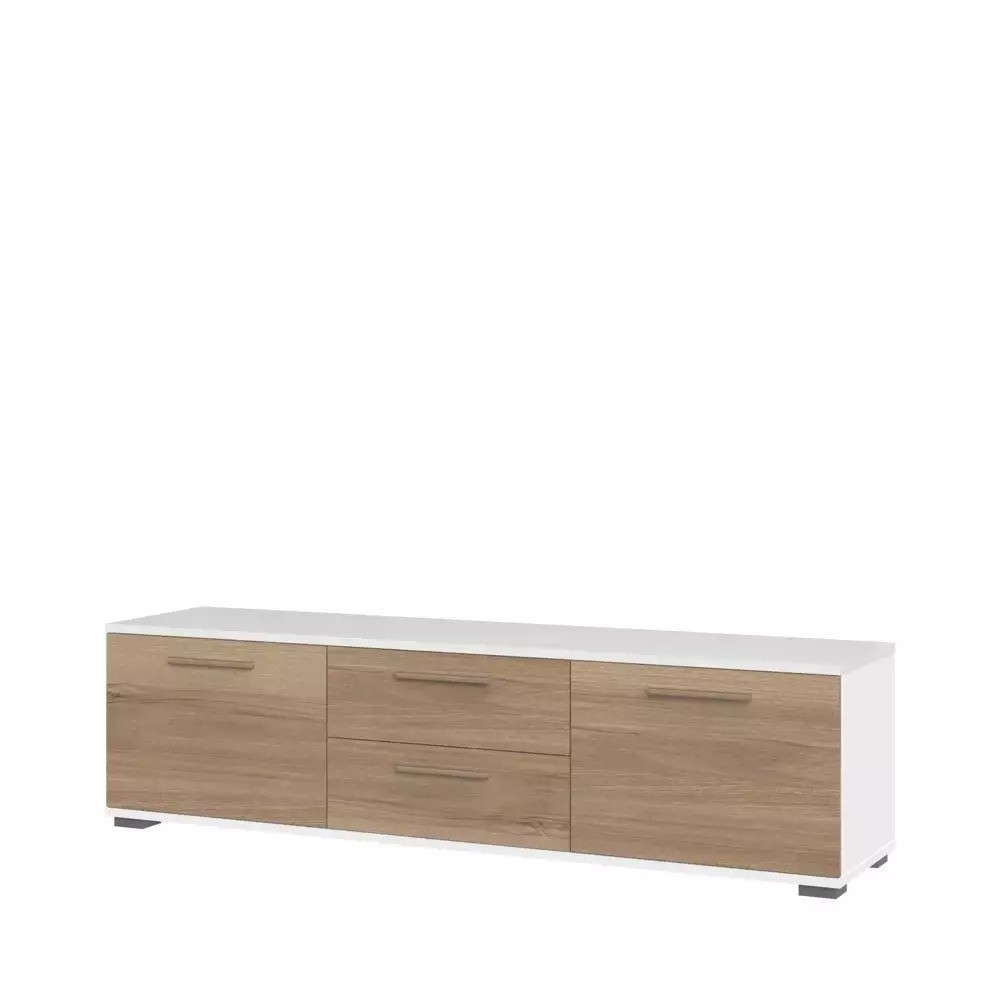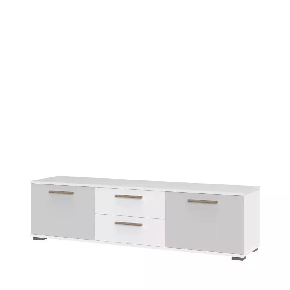 Moderna in praktična TV omarica E4 je odlična izbira, če potrebujete shranjevalni prostor v obliki predalov in vratc. TV omarica vsebuje dva predala v katera lahko pospravite manjše multimedijske naprave in dvoja vrata, ki bodo služila kot dodatni shranjevalni prostor, ki bo skrbel za urejeno in organizirano dnevno sobo.
