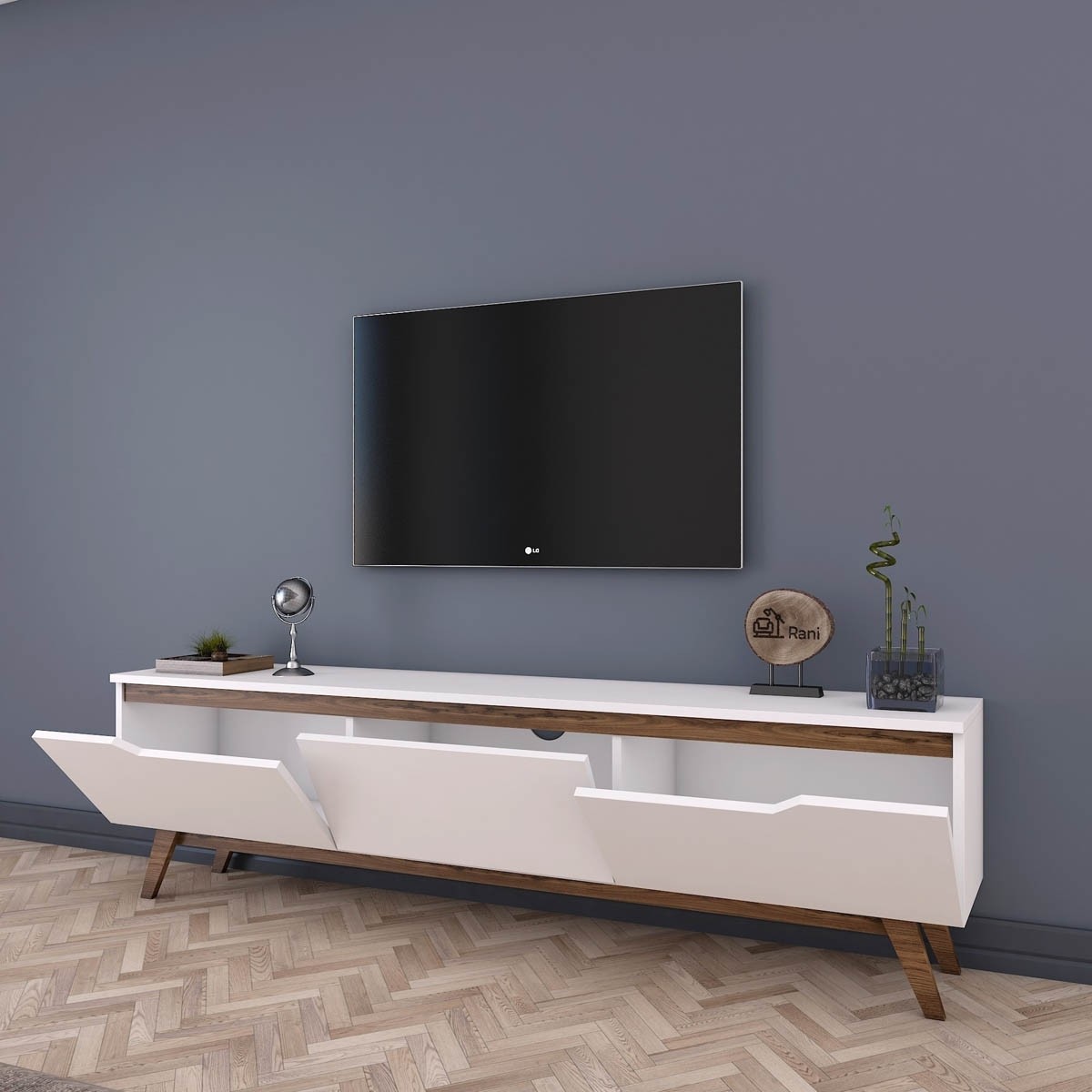 Široka TV omarica BAMBU v beli barvi je popolna izbira za vsak prostor, ki potrebuje funkcionalno in estetsko privlačno pohištvo. Ta omarica je dovolj velika, da sprejme televizor velikega formata in ima veliko prostora za shranjevanje drugih multimedijskih naprav, kot so predvajalniki, zvočniki in igralne konzole. Bela barva daje eleganten videz, ki se bo ujemal z vsakim dekorjem.