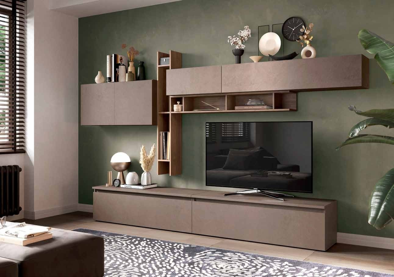 Ta TV omarica združuje prefinjen dizajn z naravnimi toni, ki ustvarjajo prijetno in toplo vzdušje v vašem domu. Zaradi svoje vsestranskosti in modularnosti se popolnoma prilagodi različnim prostorom in potrebam bivanja.
