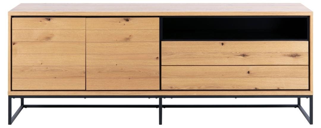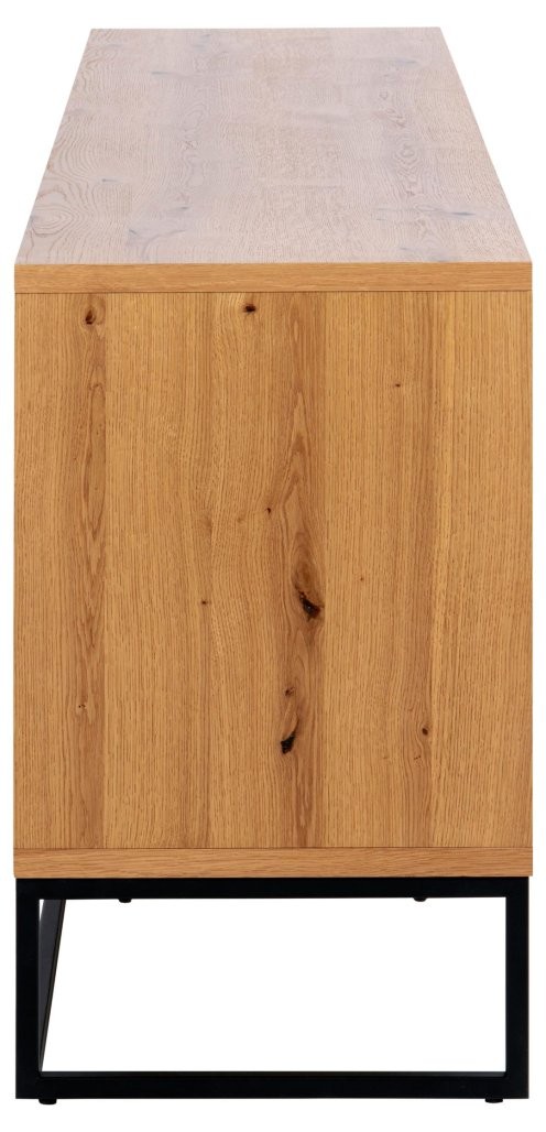 TV omarica Caspen je oblikovana z mislijo na skandinavski stil. Rustikalni občutek mu daje divji hrastov furnir in kovinsko podnožje z grobo površino. Njena ključna funkcija, izvlečni predali in odprti prostori, omogočajo enostavno shranjevanje, hkrati pa mehanizem push to open zagotavlja elegantno odpiranje. Nakup te omarice bo pričaral košček narave v vašem domu.