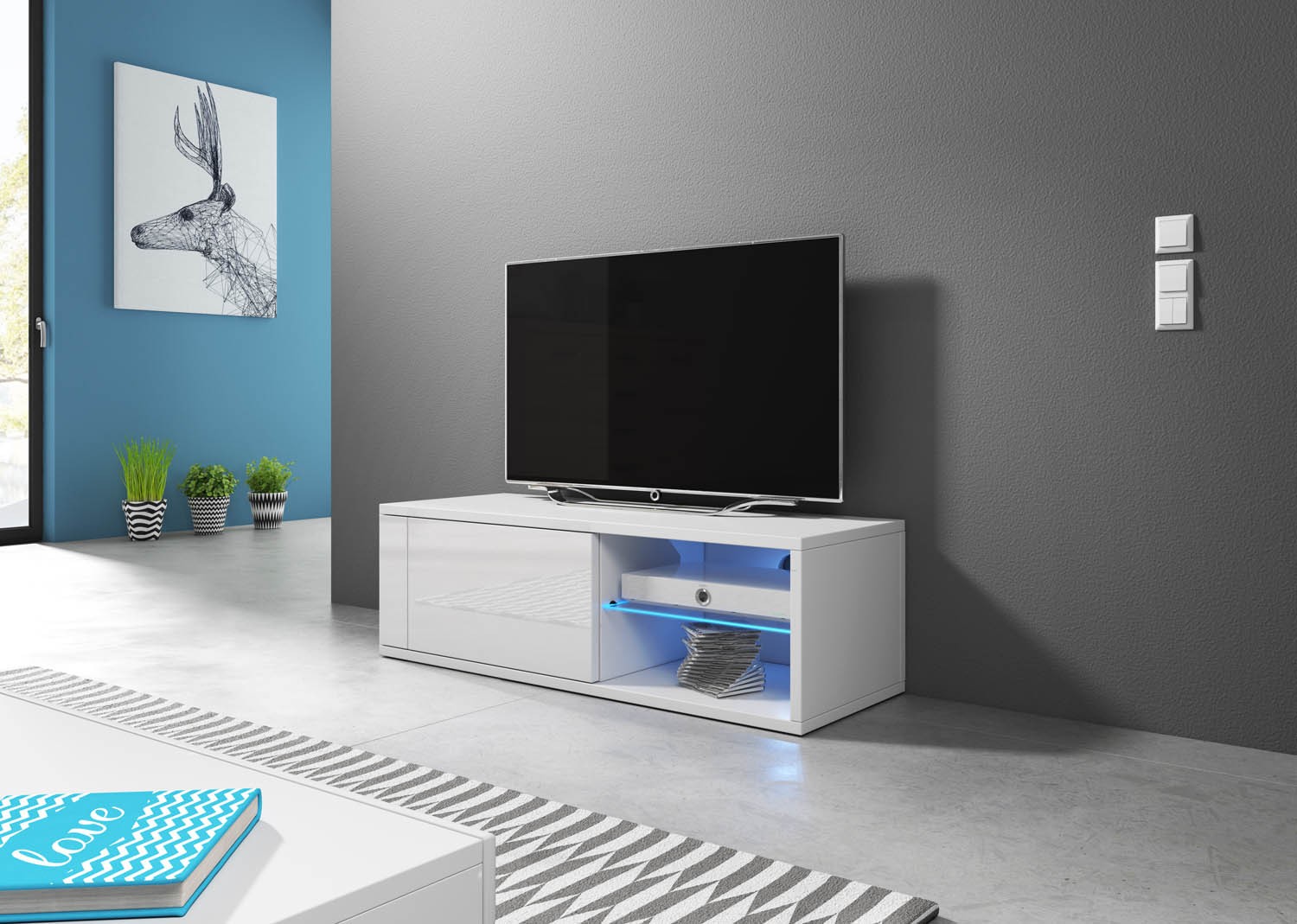 Planirate prenovo doma? TV omarica ELSA bela visoki sijaj/mat bela 100 cm + LED v vaš dom prinese izjemen stil in ga z lahkoto naredi bolj modernega. Znebite se nepotrebne navlake in naredite vašo dnevno sobo bolj prostorno s tem TV regalom.Vam vaš dom ne nudi veliko prostora? Potem morate biti še posebej pozorni pri izbiri vašega pohištva.Če v vašem domu ni veliko prostora je določitev postavitve precej težavna. Zato je ta TV regal zasovan z namenom, da naredi vaš dom bolj prostoren in posledično tudi bolj udoben.