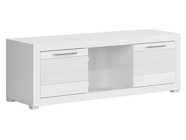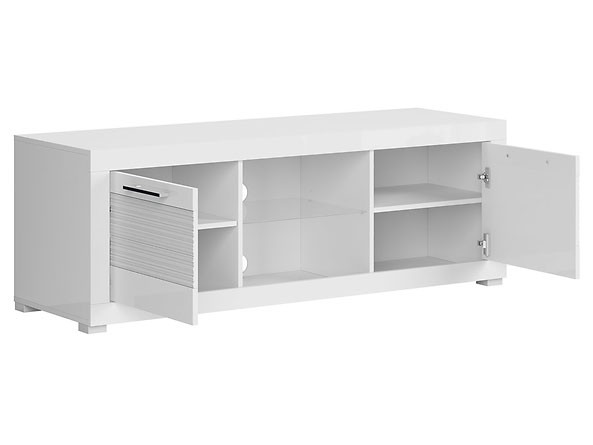 Tv-omarica FLAMES je modernega izgleda in je na voljo v beli barvi visokega sijaja, ki bo prinesla svetlobo v vaš prostor. Tv-omarica vam nudi veliko prostora za shranjevanje vaših stvari, kar vam omogoča urejeno dnevno sobo.
