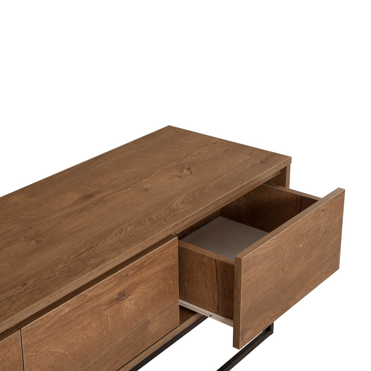 TV omarica GAKPO je opremljena s tremi predali. Predali so enostavni za odpiranje in zapiranje ter nudijo dovolj prostora za shranjevanje vseh vaših multimedijskih naprav in pripomočkov. Kovinsko podnožje, na katerem omarica stoji, daje stabilnost in trpežnost.