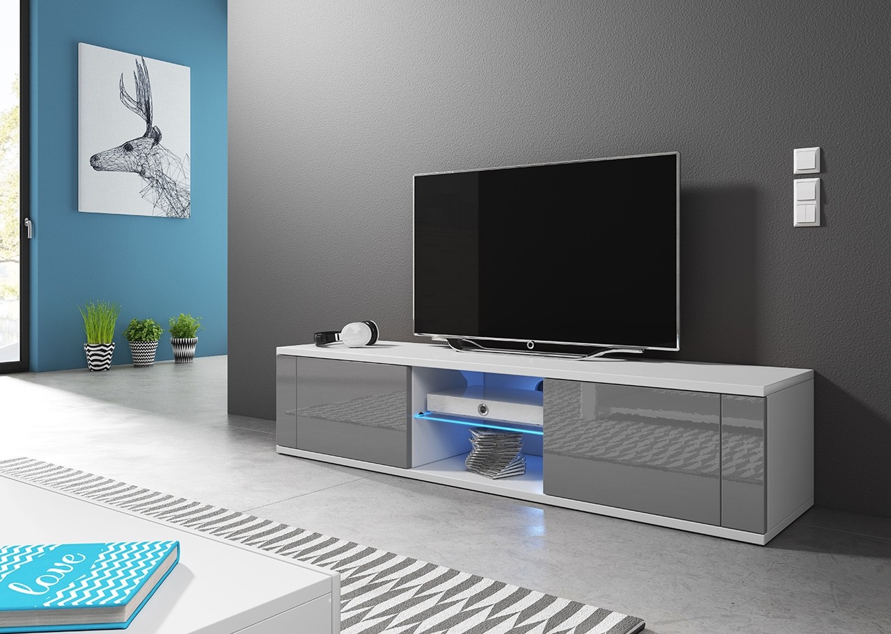 Od vseh sob v vašem domu verjetno največ časa preživite v dnevni sobi. To je prostor, kjer se lahko podružimo in skupaj preživljamo prijetne trenutke z našimi najdražjimi. To je tudi prostor v katerem se lahko podružite z gosti, zato je pomembno, da je dnevna soba prostorna in udobna. S TV omarica HOLLY siva visoki sijaj/mat bela 140 cm + LED bo vaša dnevna soba videti bolj prostorna in sveža, zato se boste lahko sproščali v udobnem in modernem okolju. S TV omarica HOLLY siva visoki sijaj/mat bela 140 cm + LED lahko personalizirate svojo dnevno sobo in ji dodate pridih modernega dizajna, hkrati pa bo dnevna soba videti bolj urejena in prostorna.
