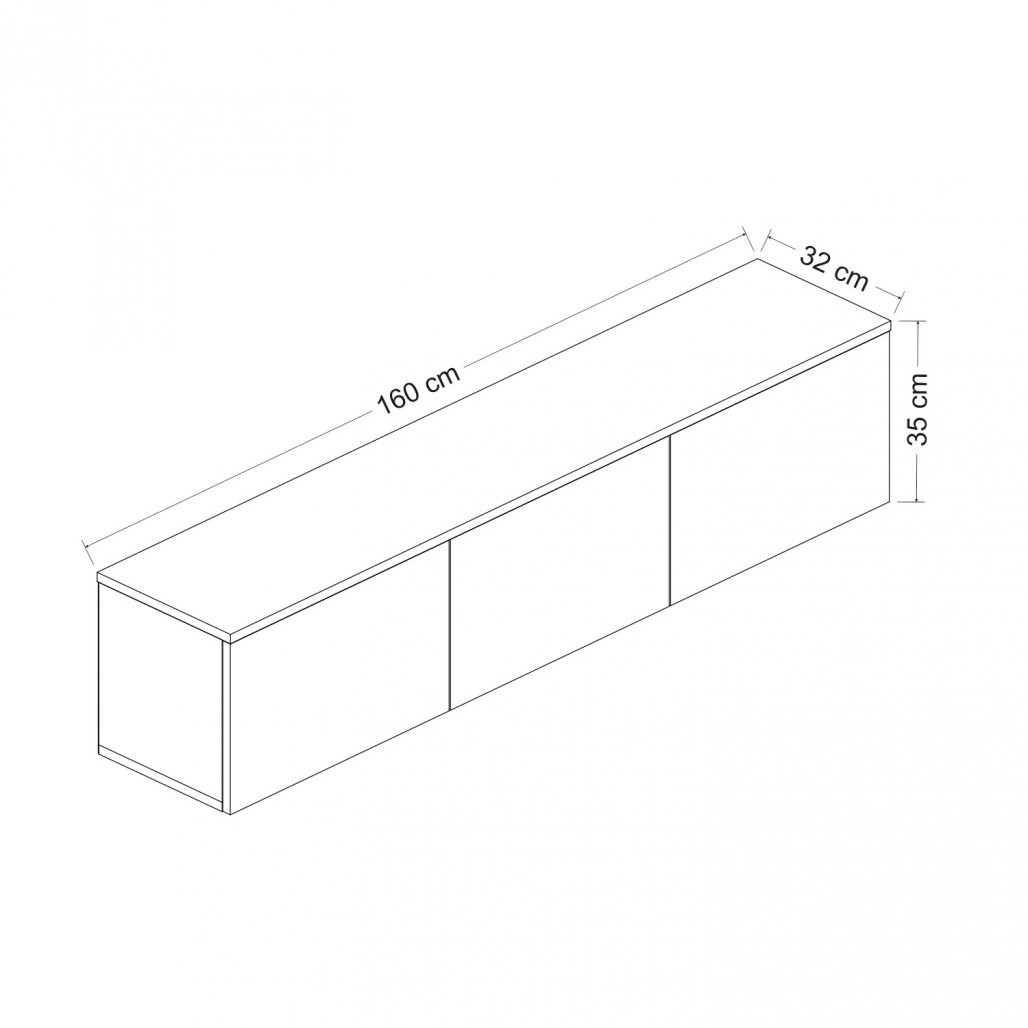 To Omarica za TV lahko preprosto pritrdite na steno, kar zagotavlja dodatno stabilnost in varnost. Ne glede na to, ali imate majhno stanovanje ali prostorno dnevno sobo, se to vsestransko stojalo prilagodi vašim potrebam. Zaradi kompaktnih dimenzij 160 cm širine, 35 cm višine in 32 cm globine je primeren za vsak prostor.