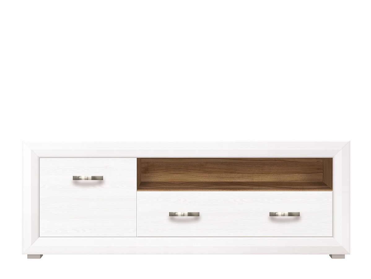 Tv-omarica MALTA je na voljo v kombinaciji barve macesna in oreha, ki se odlično dopolnjujeta in prinašata svežino in svetlobo v dnevni prostor. Tv-omarica vsebuje predal in vratca kamor lahko pospravite stvari, ki jih želite imeti na dosegu roke.