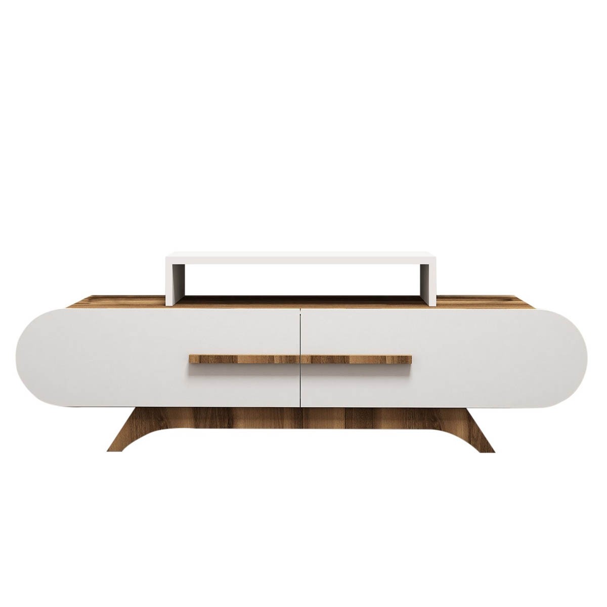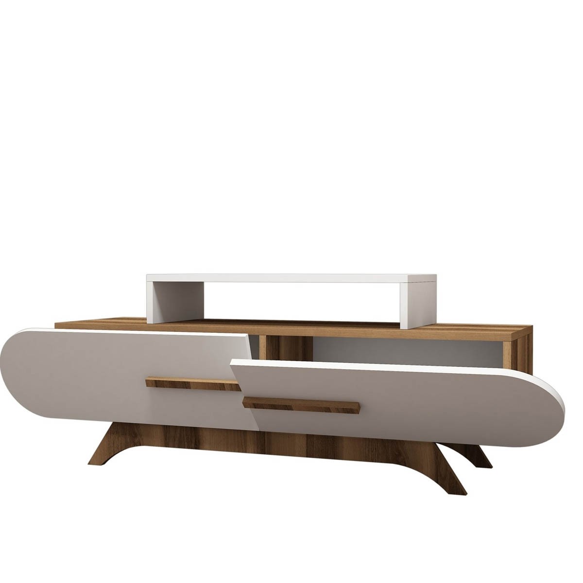 TV omarica MOLINA ima zanimivo obliko, ki jo spremeni v edinstven kos pohištva v vašem domu. Zasnovana je tako, da ponuja veliko prostora za shranjevanje predmetov, medtem ko poskrbi za eleganten in moderen izgled. Na vrhu omarice je prostor za postavitev vaše televizije, ki je dovolj širok in stabilen, da bo držal vašo televizijo varno na mestu.