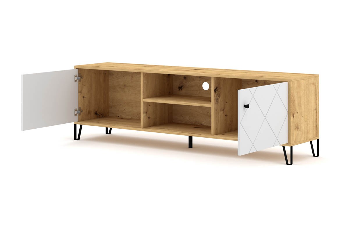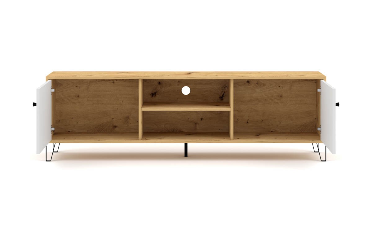 Preprosta TV omarica MURI je moderna a hkrati preprosta, ter izdelana v skandinavskem stilu, ki vam poživi prostor. Poleg prostora za televizijo ponuja tudi dovolj prostora za shranjevanje vaših DVD-jev, konzol in drugih naprav.