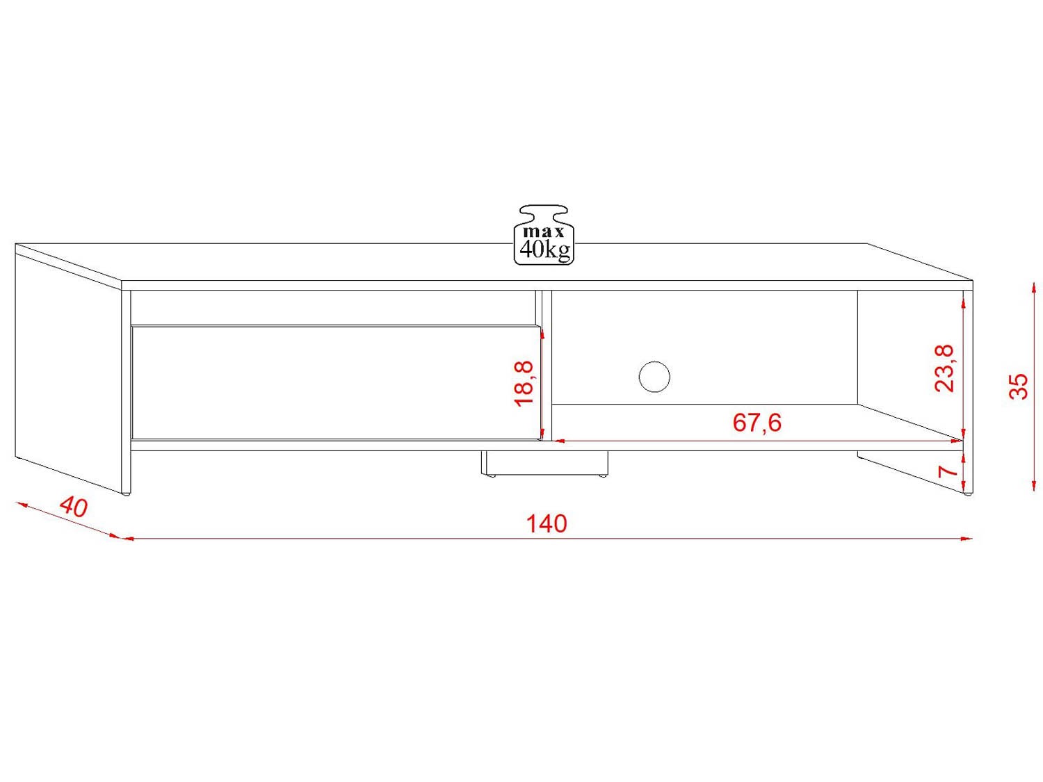 prinese več elegance in udobja. Znebite se nepotrebne navlake in naredite vašo dnevno sobo bolj prostorno s tem TV regalom.Pri manjših domovih je še posebej pomembno, da izbiri novega pohištva namenite veliko pozornosti, da vaš dom ne bo prenatrpan in poln navlake. Če v vašem domu ni veliko prostora je določitev postavitve precej težavna. Zato je ta TV regal zasovan z namenom, da naredi vaš dom