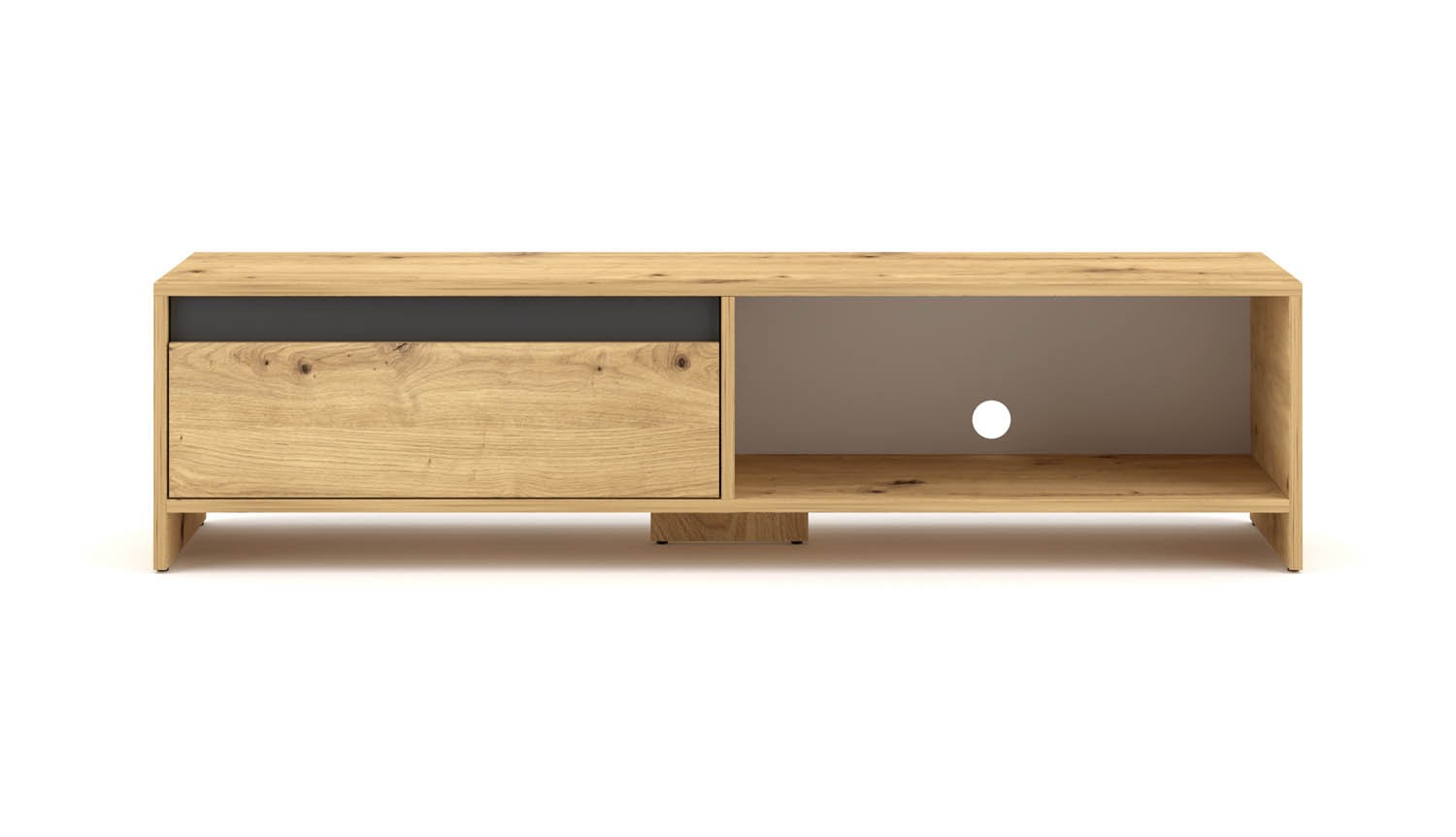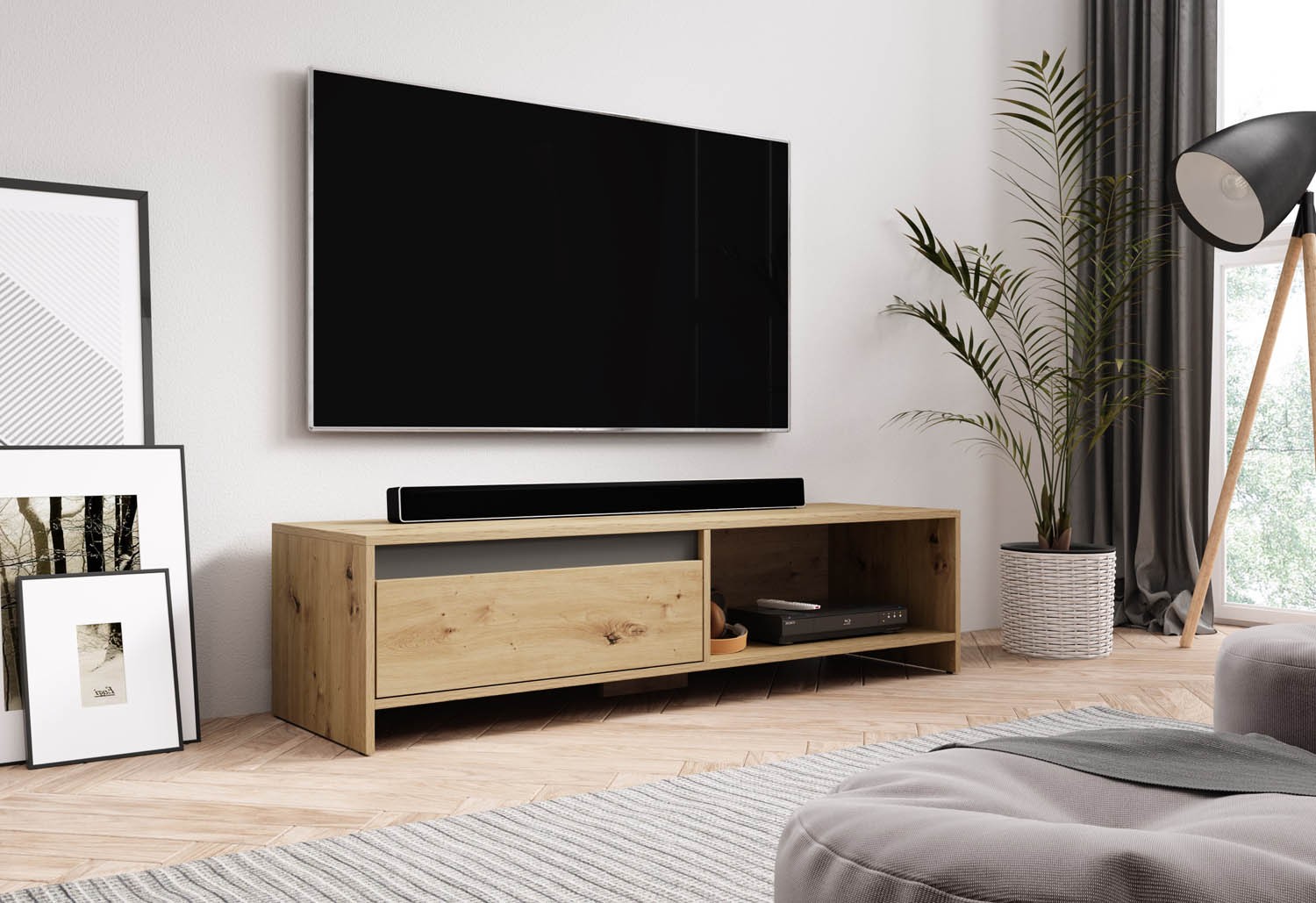 Želite prenoviti manjše stanovanje ali garsonjero? TV omarica NELI 140 cm HRAST + GRAFIT je izdelan z namenom, da v vaš dom
