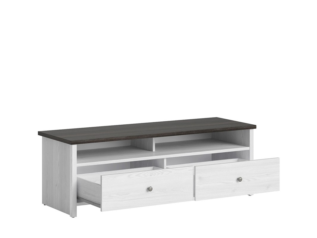 Tv-omarica PORTO je modernega izgleda in je primerna tudi za manjše dnevne prostore, kjer boste lahko tudi vi imeli svoj kotiček za zabavo ob gledanju televizije. Tv-omarica nudi dva predala in dve polici. Na voljo je v svetlo sivi barvi bora.