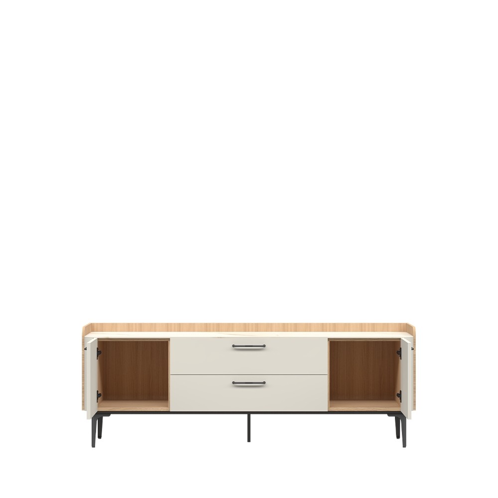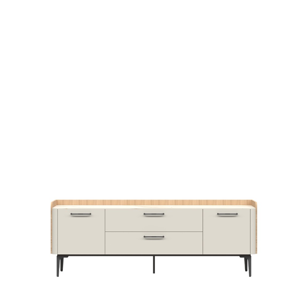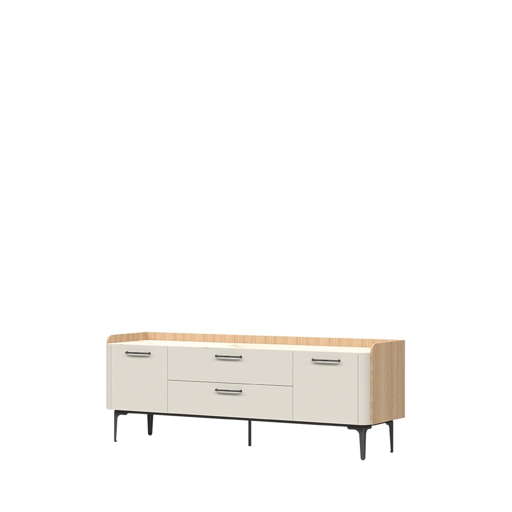 Sodobna, elegantna in funkcionalna TV OMARICA RADDA AIR v vašo dnevno sobo vnaša lahkotnost in harmonijo. Usklajenost barve Pepper White in dekorja lesa ustvarja prijeten ter vizualno zračen prostor, steklena površina pa dodaja pridih razkošja. Visoke nogice omogočajo enostavnejše čiščenje, mehko zapiranje pa lahkotnejšo vsakodnevno uporabo.