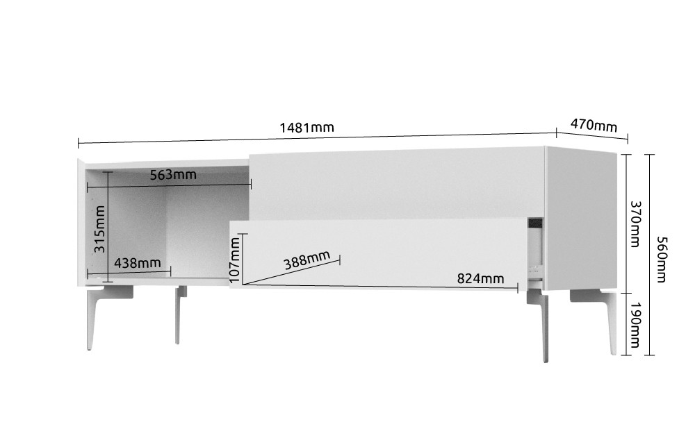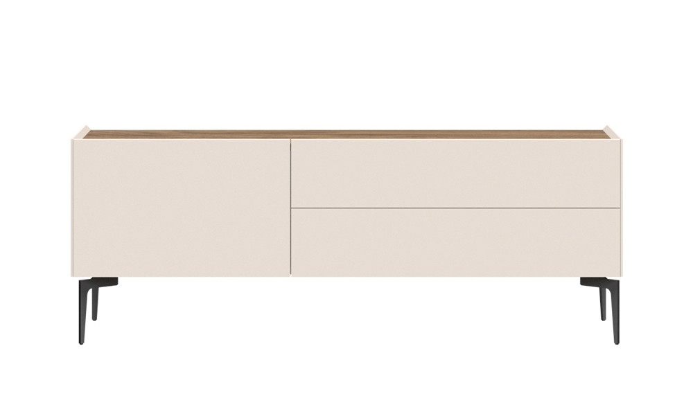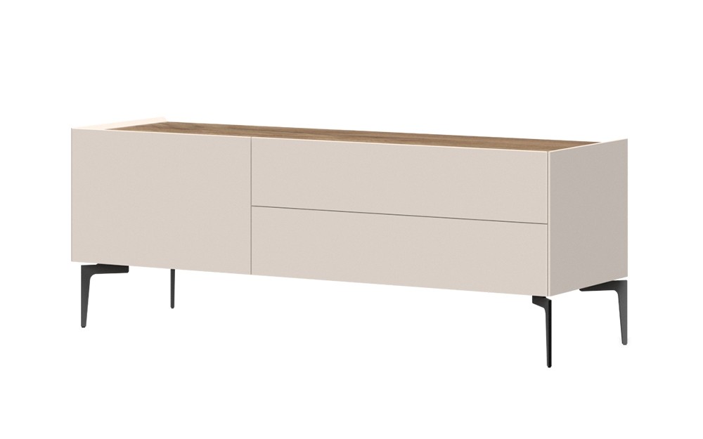 TV omarica SKY 45 - 148 CM ima kovinske noge, ki dajejo ne samo stabilnost temveč omogočajo, da z lahkoto dosežete pod omarico in počistite brez nepotrebnega premikanja. Omarica vsebuje dva predala in ena vratca. Na voljo je v čudoviti kombinaciji kašmir mat lak barve in tobacco hrasta.