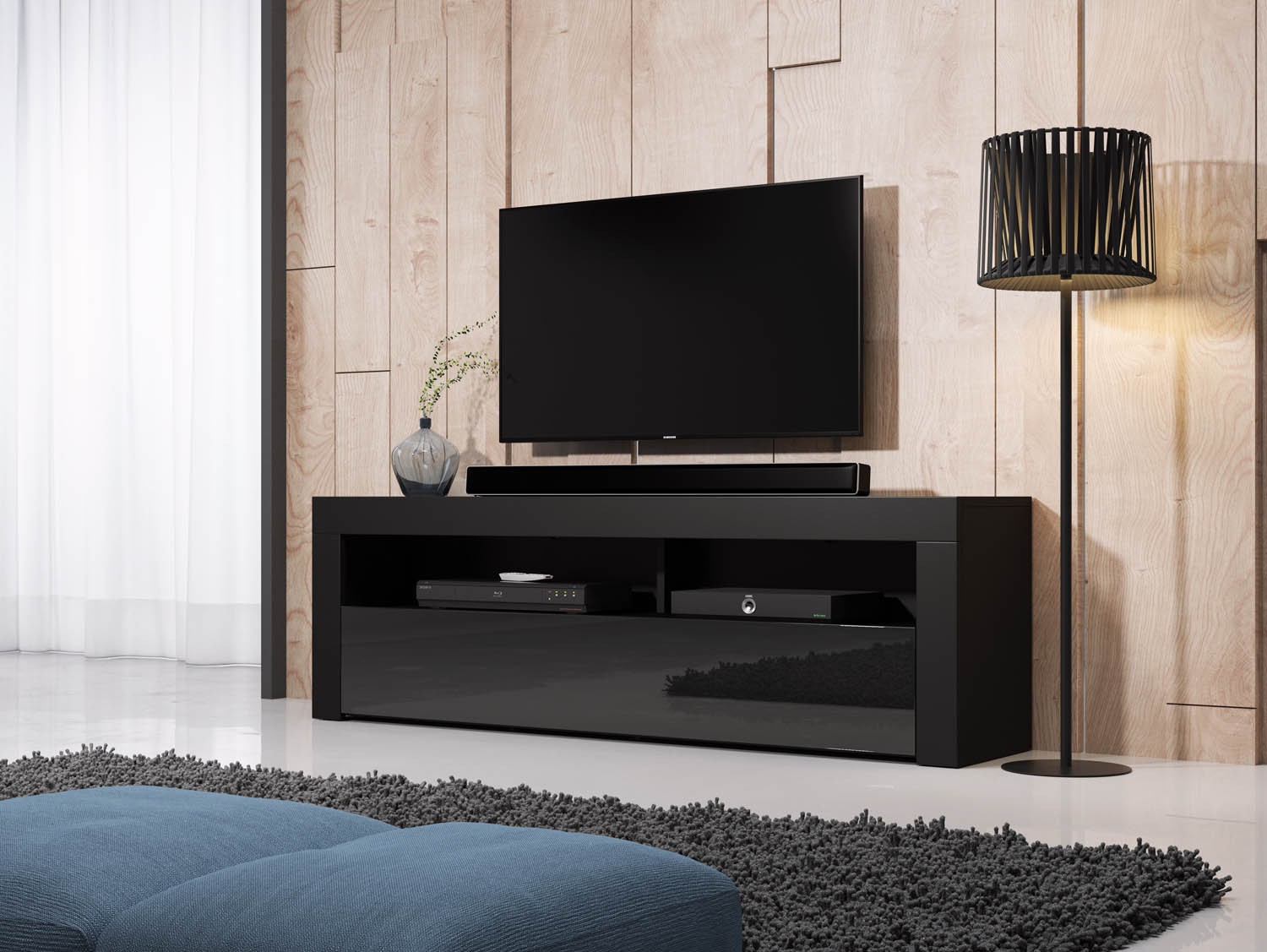 Ste pripravljeni za osvežitev vaše dnevne sobe ali imate popolnoma novo dnevno sobo ki nestrpno čaka na novo pohištvo? Ker je dnevna soba prostor v katerega sprejmemo goste je zelo pomembno, kakšno pohištvo izberemo in za kakšno postavitev se odločimo. S ponosom vam predstavljamo TV omarica TITAN črna visoki sijaj/mat črna 160 cm + LED, ki poskrbi za prijeten in lep ambient vaše dnevne sobe, prav tako pa ne zavzame veliko prostora zato bo prostor še vedno prostoren. TV omarica TITAN črna visoki sijaj 160 cm + LEDu dodajte še osebni pridih z dodatnimi dekorativnimi predmeti in slikami, da boste res ponosni na izgled svoje dnevne sobe.