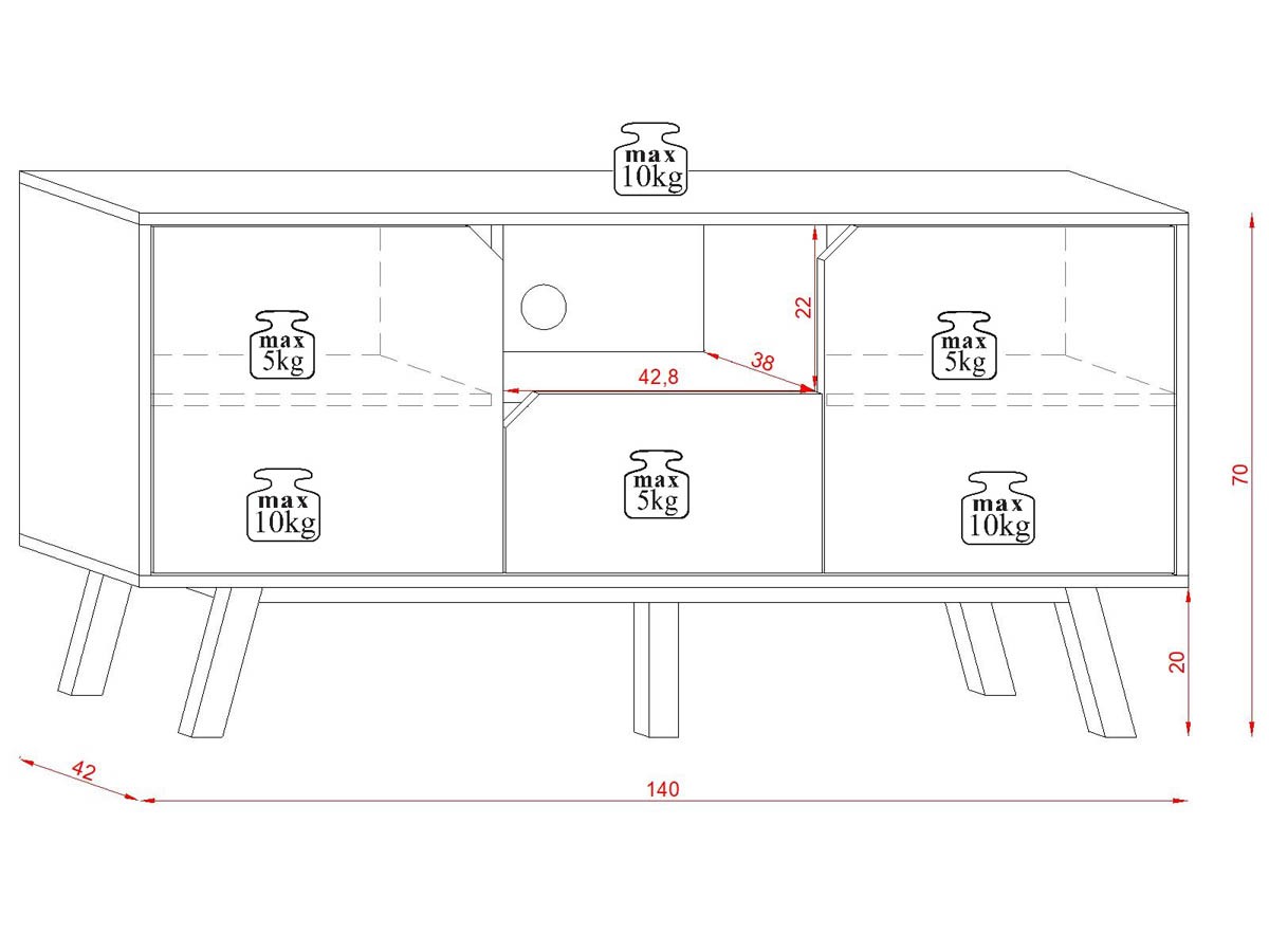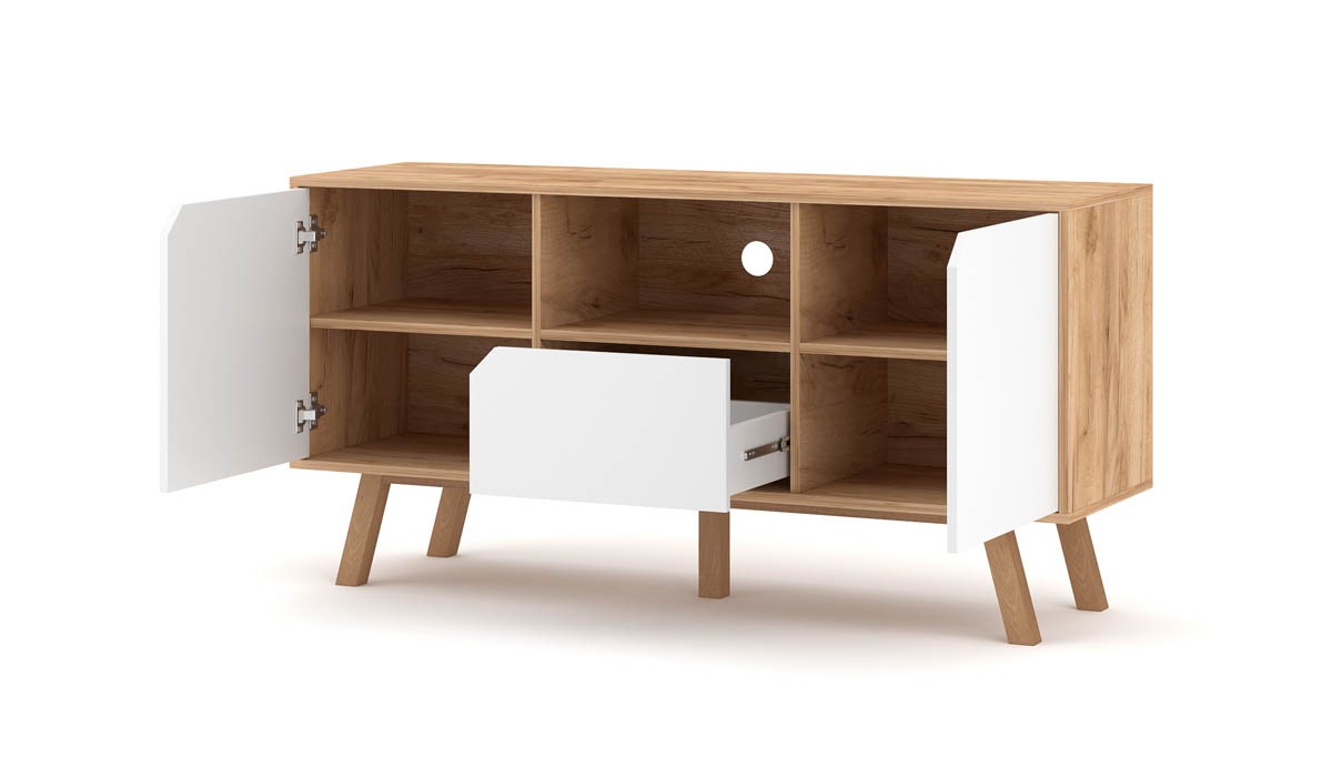 TV omarica TOKIO ponuja preprost vendar sodoben dizajn, ki prostoru doda pridih svežine. Za lažje čiščenje poskrbijo nogice, ki dvignejo tv omarico od tal. Omarica vsebuje predal, polico in dvoje vrat za shranjevanje in organiziranje vaših multimedijskih naprav.