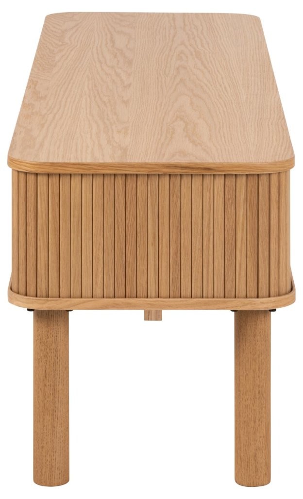 TV omara VRENZO se ponaša s svojo moderno in naravno estetiko. Zasnovana je z zavijajočimi vrati, ki skrivajo priročen skladiščni prostor za vaše knjige, družabne igre in ostale predmete. Privoščite si eleganco in si naročite to TV omarico še danes!