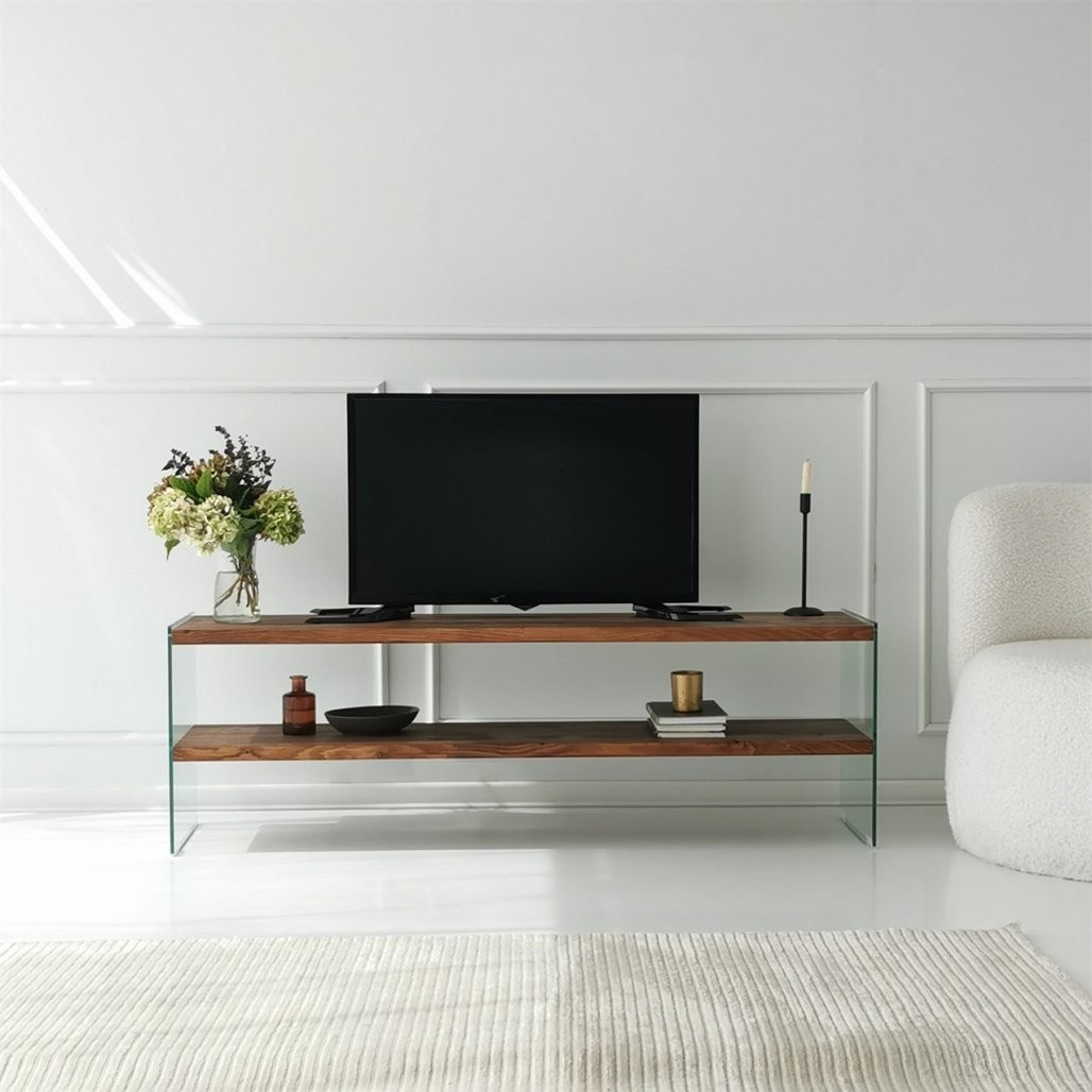 Predstavljamo vam našo izvrstno TV omarico ki je ustvarjena, da s svojo brezčasno lepoto in izjemno kakovostjo izboljša vaš življenjski prostor. Omarica je izdelana iz 100-odstotno kaljenega stekla in izžareva prefinjenost, hkrati pa zagotavlja trden in zanesljiv temelj za vaš televizor. Okvir, izdelan iz 100-odstotnega masivnega lesa, doda toplino in eleganco vsakemu prostoru.