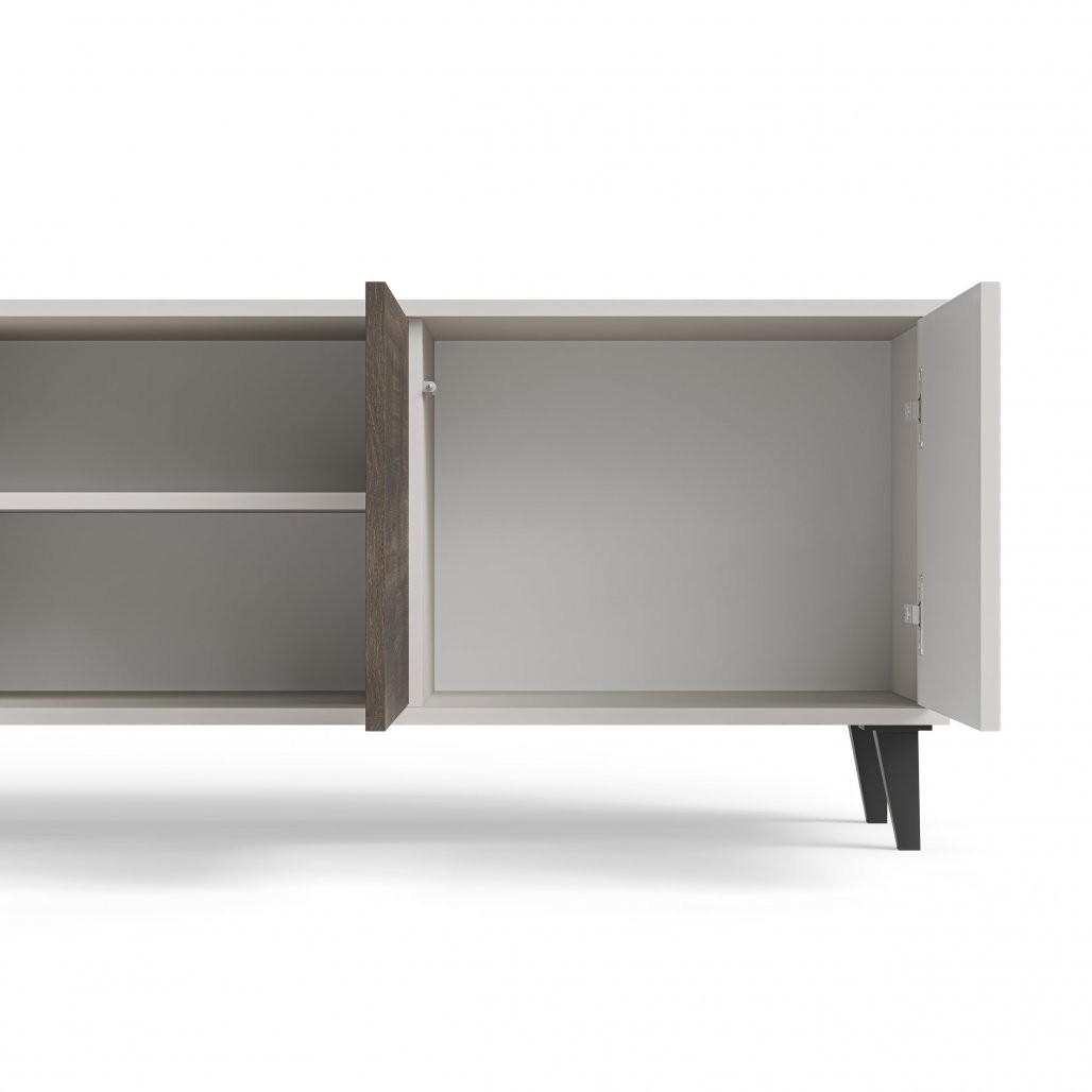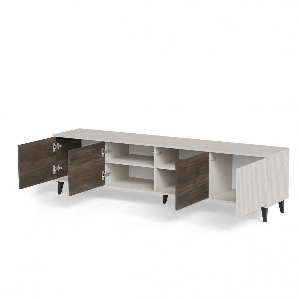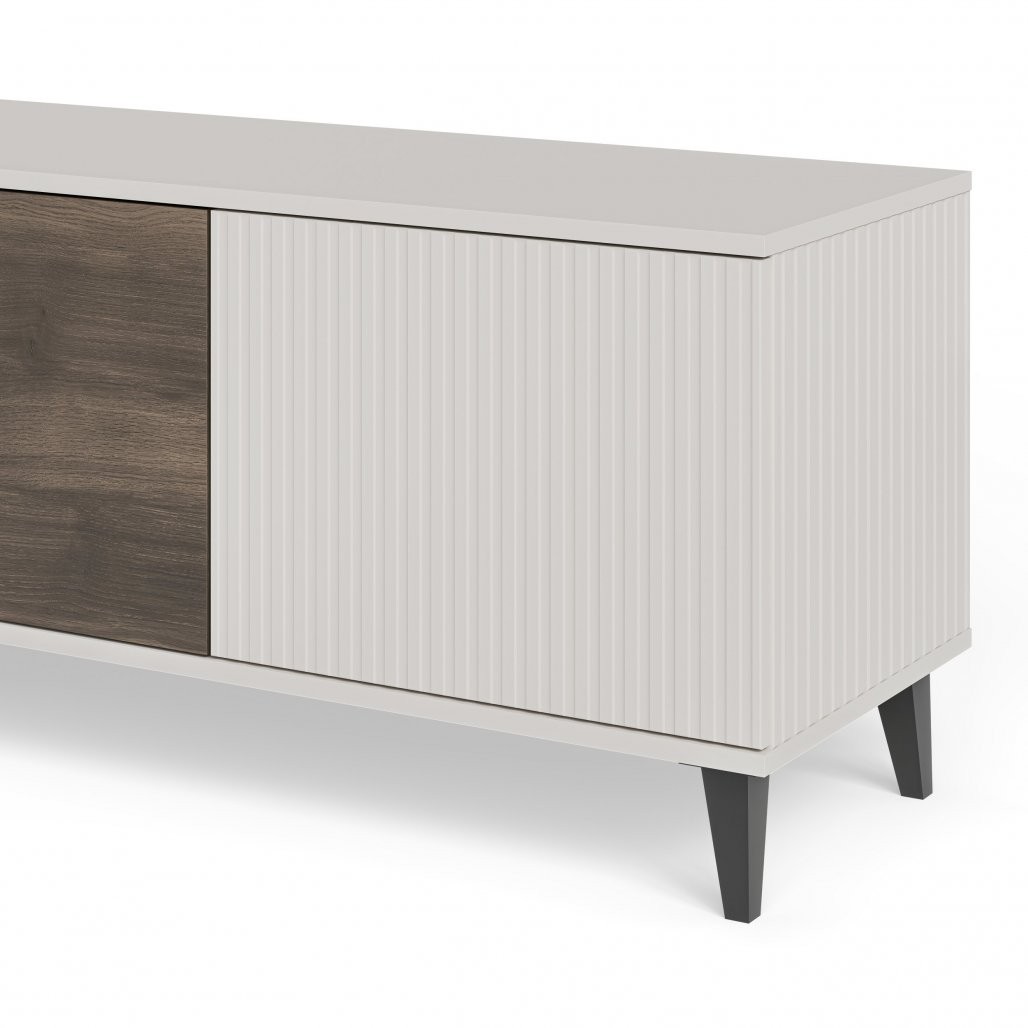 TV omarica Zeran 2 RTV-3 je zasnovana za sodobno življenje, kjer je organizacija ključnega pomena. Z velikimi dimenzijami nudi obilo prostora za shranjevanje. Kombinacija barv kašmir, oreh in črna ustvarja prefinjen in moderen videz, ki se zlahka ujema z različnimi notranjimi slogi.
