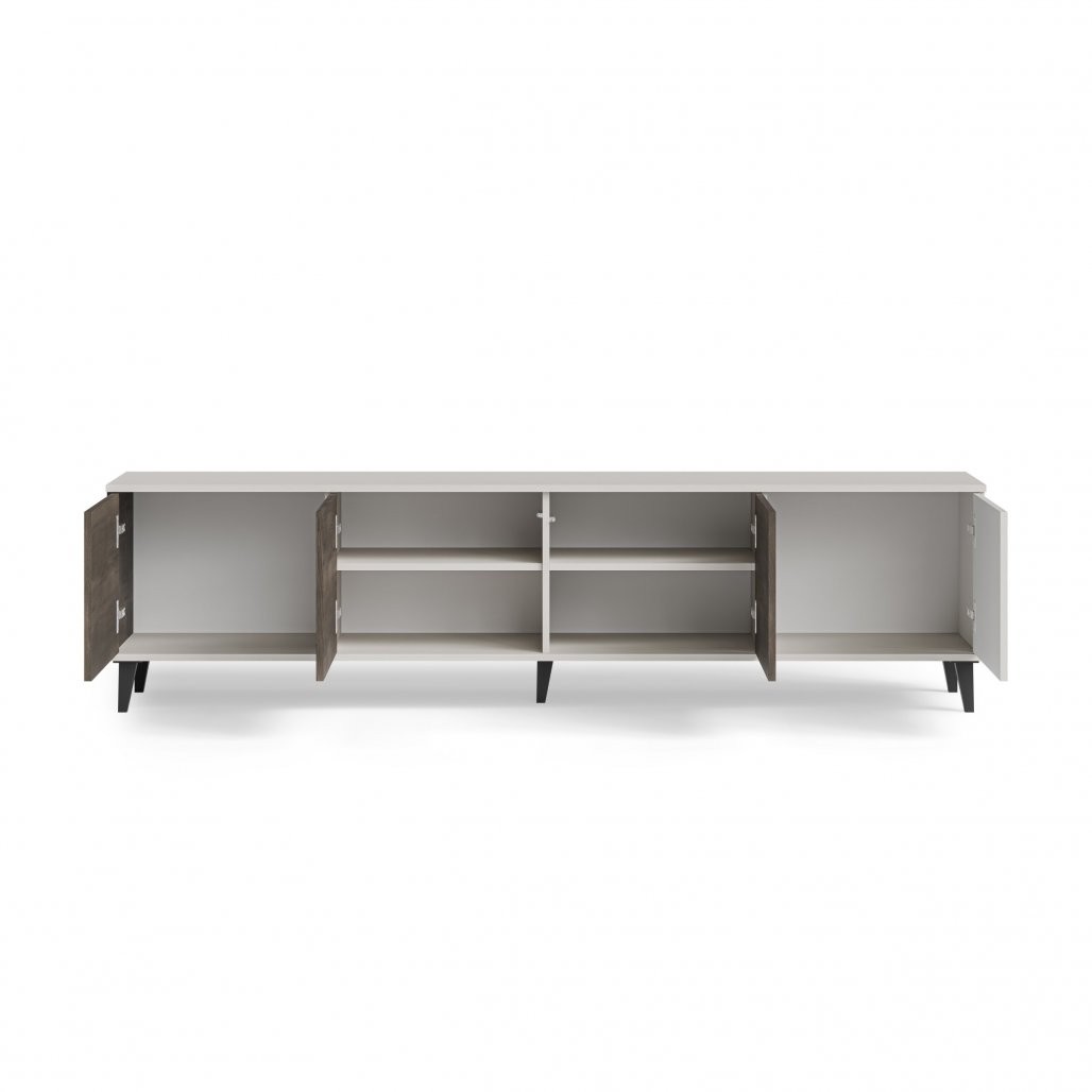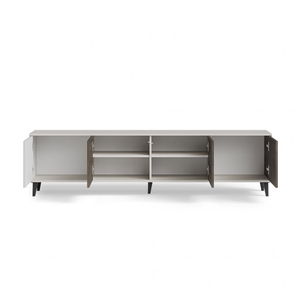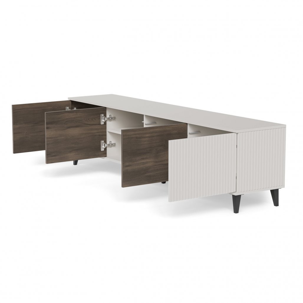Odkrijte popolno kombinacijo sodobnega dizajna in funkcionalnosti z TV omarico Zeran 2 RTV-3. Ta elegantna TV omarica bo postala osrednji kos vašega dnevnega prostora, saj ponuja stilsko rešitev za shranjevanje vseh vaših multimedijskih naprav in dekorativnih predmetov. Izdelana je iz visokokakovostnih materialov, ki zagotavljajo dolgotrajno vzdržljivost in estetsko dovršenost.