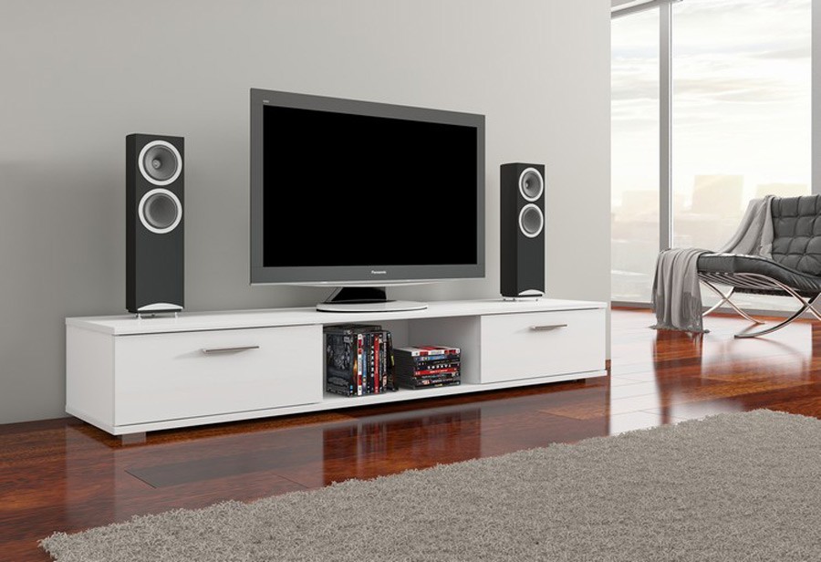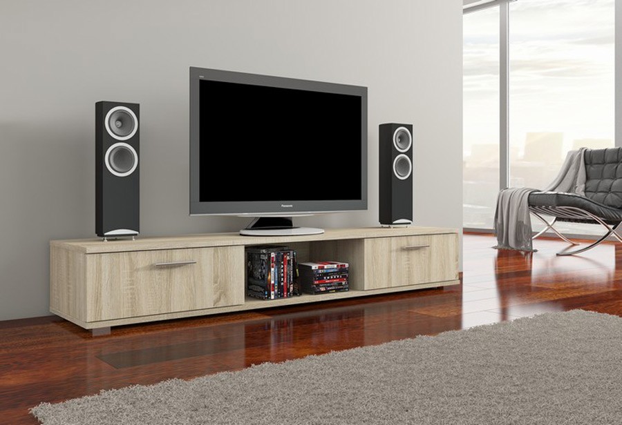 Televizijski regal je sestavljen iz dveh predalov, kateri vam nudijo veliko prostora za shranjevanje dokumentov, knjig, DVD-jev in ostalih osebnih stvari, ter polico na sredini, ki vam lahko služi v različne namene. Uporabite jo lahko za TV sprejemnik, DVD predvajalnik, knjige ali za poljubno dekoracijo.